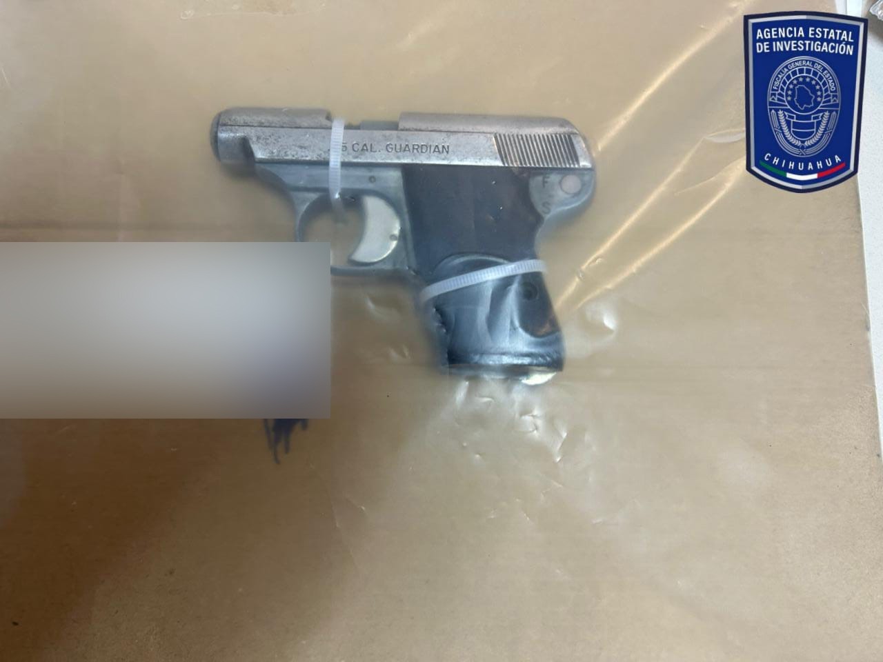 Mientras que en el ejido La Gomera, municipio de Hidalgo del Parral, los Agentes encontraron una pistola tipo escuadra, marca Guardian, calibre .25 y una bolsa de plástico que contenía 550 gramos de marihuana.