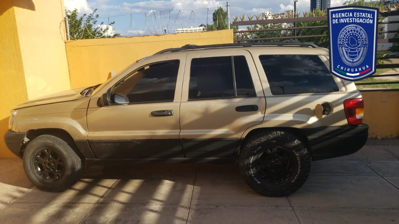 • Un vehículo automotor de la marca Jeep línea Grand Cherokee, modelo 2000, color dorado con negro, para investigación.