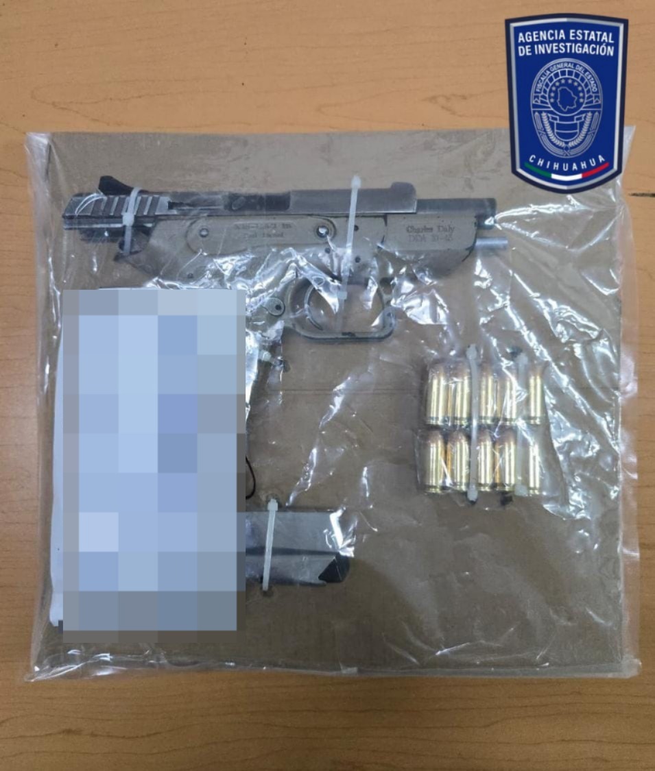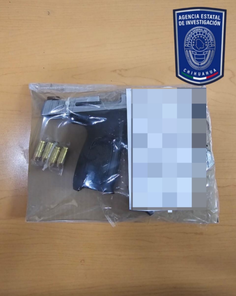 Chihuahua, Chih.- Como parte de las acciones en el combate a los delitos, elementos de la Agencia Estatal de Investigación (AEI), cumplimentaron una orden de cateo en un domicilio del fraccionamiento Rincones del Pedregal, en donde detuvieron a dos masculinos y aseguraron armas de fuego y droga.