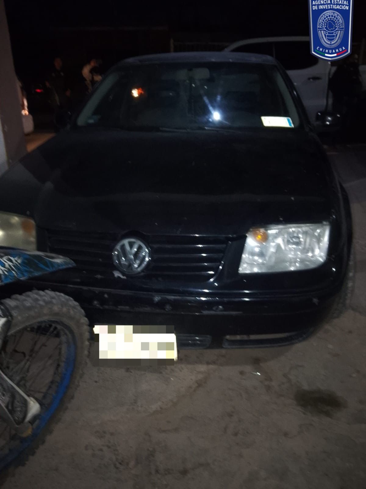 La tercera orden de cateo obtenida bajo la causa penal 190/2026, por robo agravado, se cumplimento en una casa ubicada en la calle Mina Arroyo Hondo, de la colonia El Porvenir, en donde se aseguró un vehículo de la marca Volkswagen, línea Jetta, modelo 2002, de color azul.
