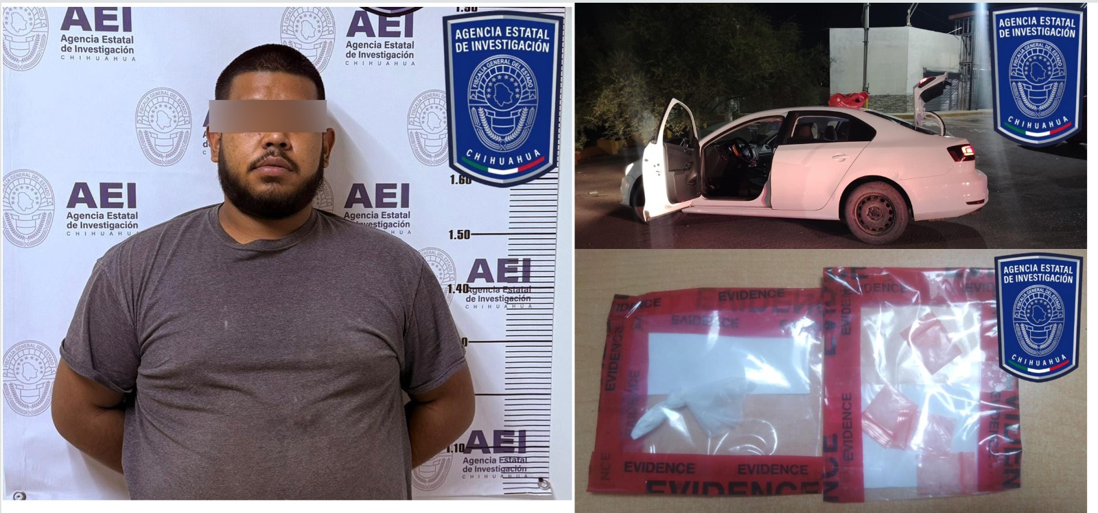 Por otra parte, en la Avenida Fuerza Aérea y carretera Chihuahua-Aldama, a la altura del Rancho La Flor, fue detenido en términos de flagrancia por delitos contra la salud, el C. Samuel Abdel R. C., de 24 años de edad, a quien se le aseguró lo siguiente: