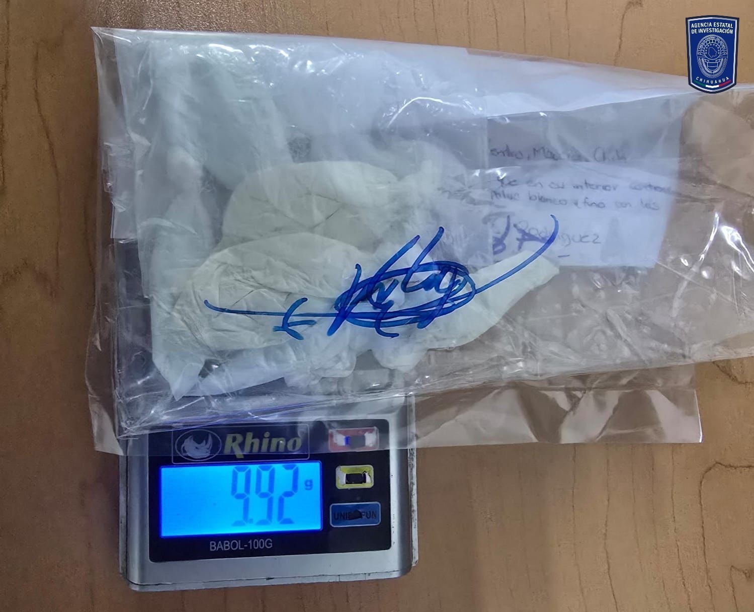 • 10 envoltorios de plástico transparente que contenían un polvo blanco con las características de la cocaína, con un peso de 9.92 gramos.