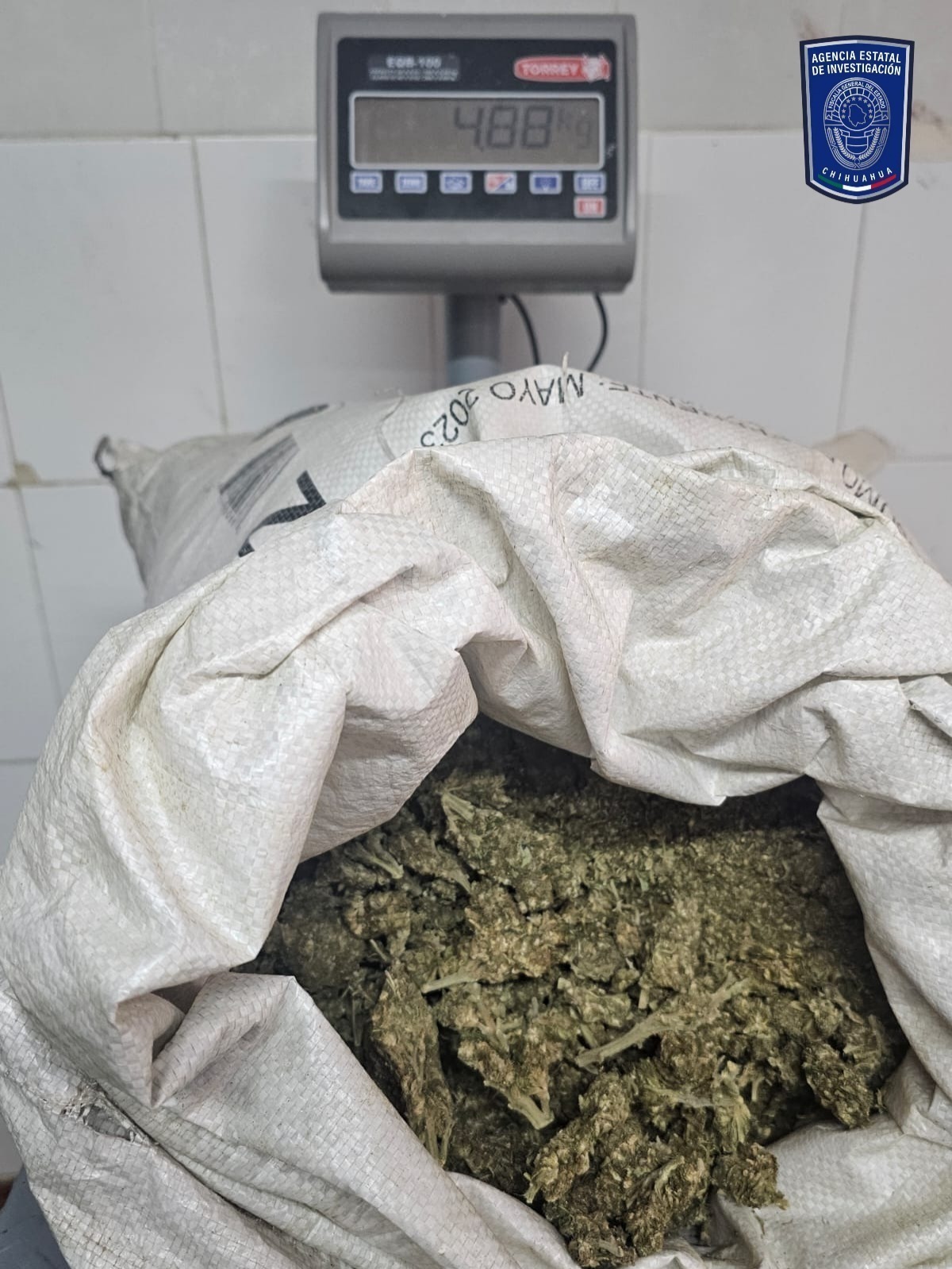 En otros hechos, los efectivos que participan en el Operativo Conjunto detuvieron por la carretera San Juanito a Basaseachi, en el municipio de Ocampo, a un masculino identificado como Giovanni B. H., de 28 años de edad a quien se le encontró en posesión de un costal con 4.88 kilogramos de marihuana.