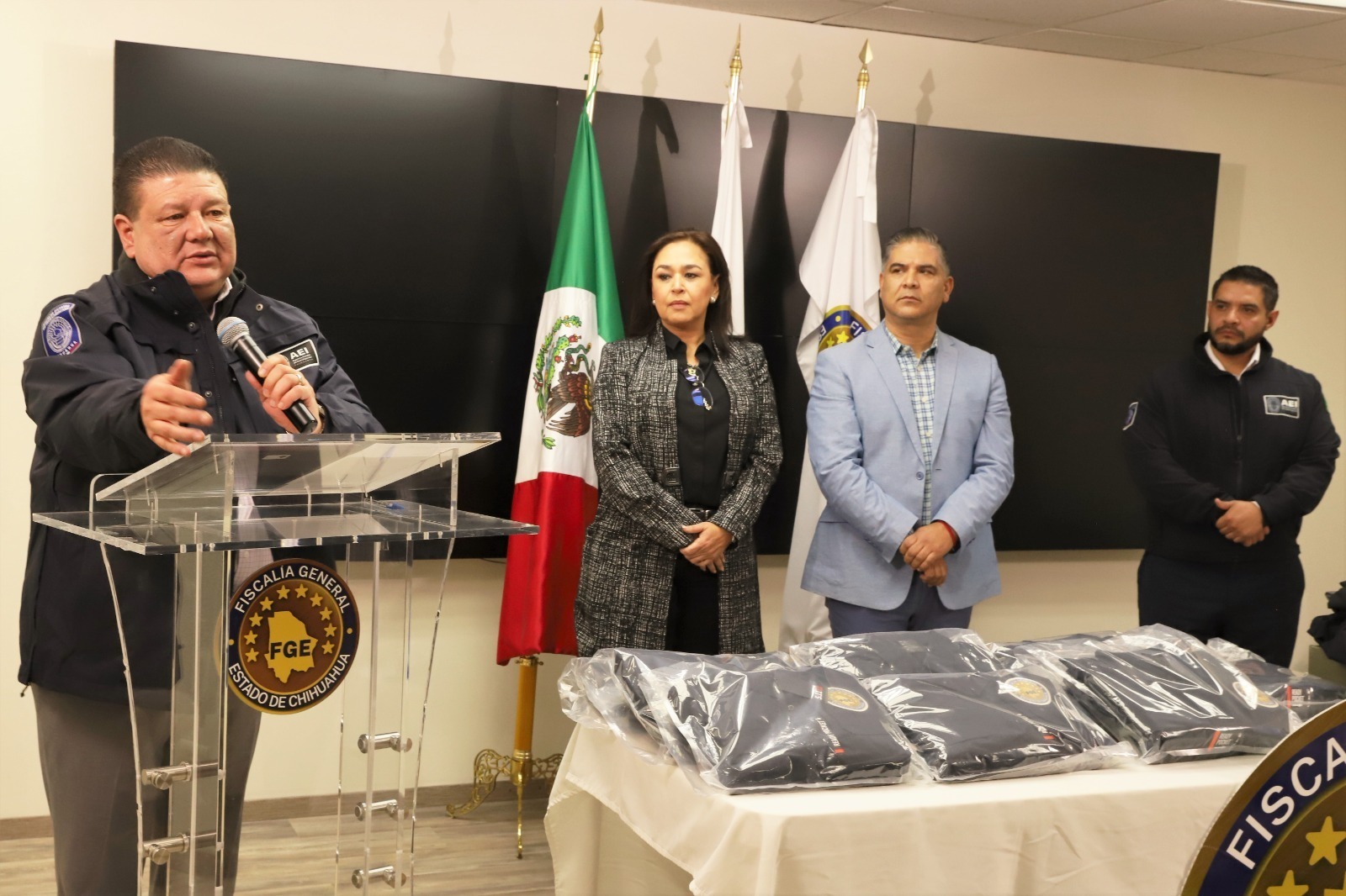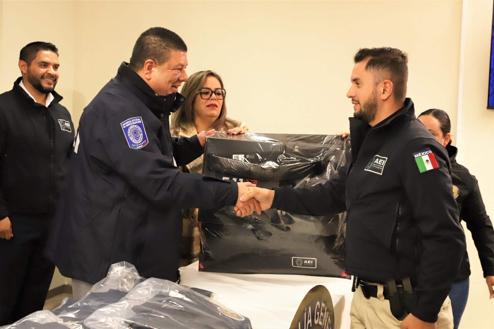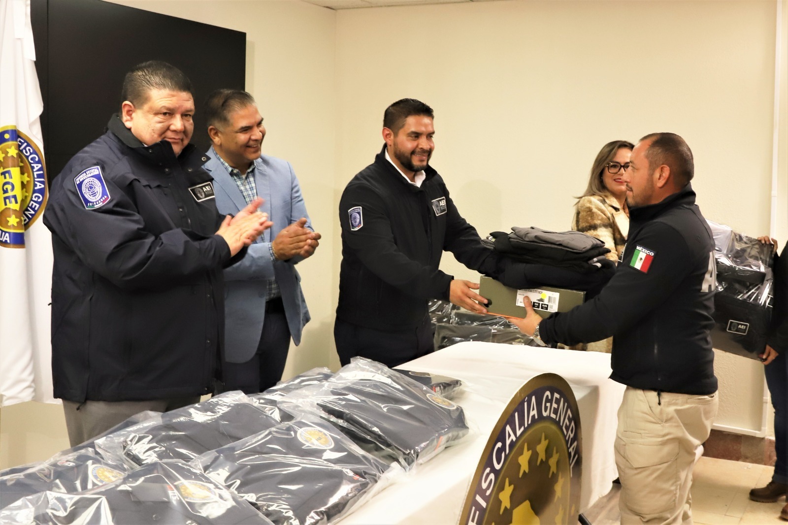 La Agencia Estatal de Investigación fue dotada de mil 350 uniformes que constan de botas, pantalón, camisola táctica, chamarras y fornituras; mientras que Dirección de Servicios Periciales recibió un total de 330 uniformes para sus peritos.