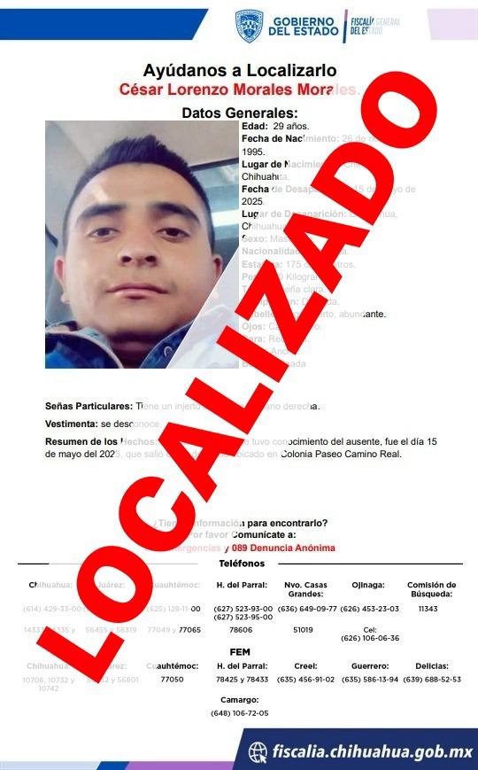 La Unidad de Investigación de Personas Ausentes y/o No Localizadas de la Fiscalía de Distrito Zona Centro encontró sanos y salvos a dos masculinos que tenían reporte de ausencia, interpuestos en la ciudad de Chihuahua.