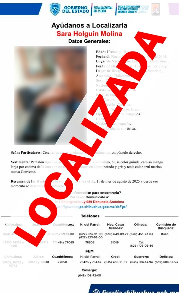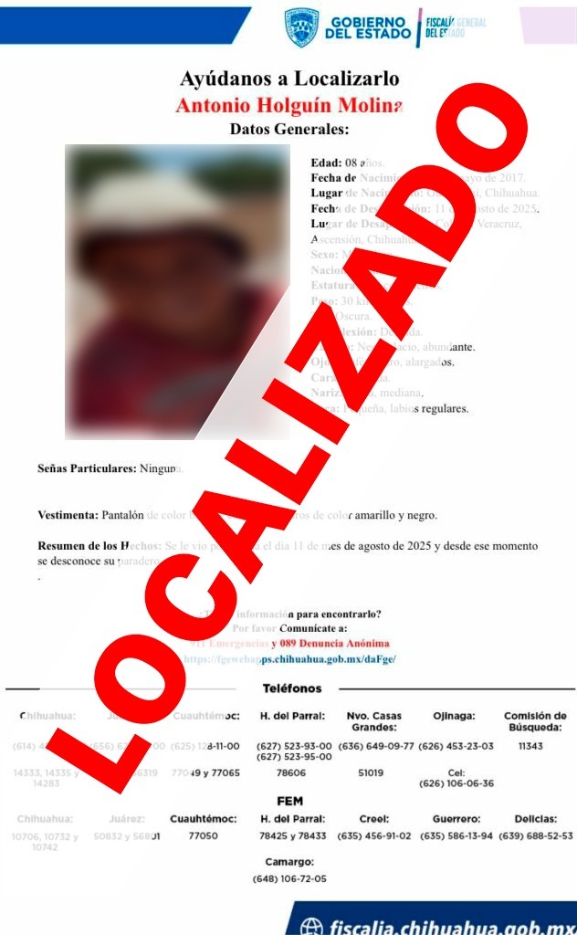 Gracias al operativo de búsqueda encabezado por la Agencia Estatal de Investigación (AEI), en coordinación con agentes del Ministerio Público de la Fiscalía de Distrito Zona Noroeste y autoridades municipales, se localizó sanos y salvos a los dos menores de iniciales S.H.M. y A. H.M., de 10 y 8 años de edad, quienes se extraviaron en la sierra del municipio de Ascensión.