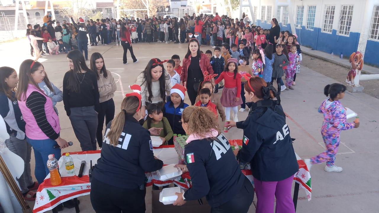 Divertida fiesta navideña, fue organizada por elementos de la Agencia Estatal de Investigación adscritos la Unidad Especializada en Justicia para Adolescentes Infractores y al Grupo de Orientación Escolar Chihuahuense a los alumnos de la escuela primaria federal Escuadrón 201.