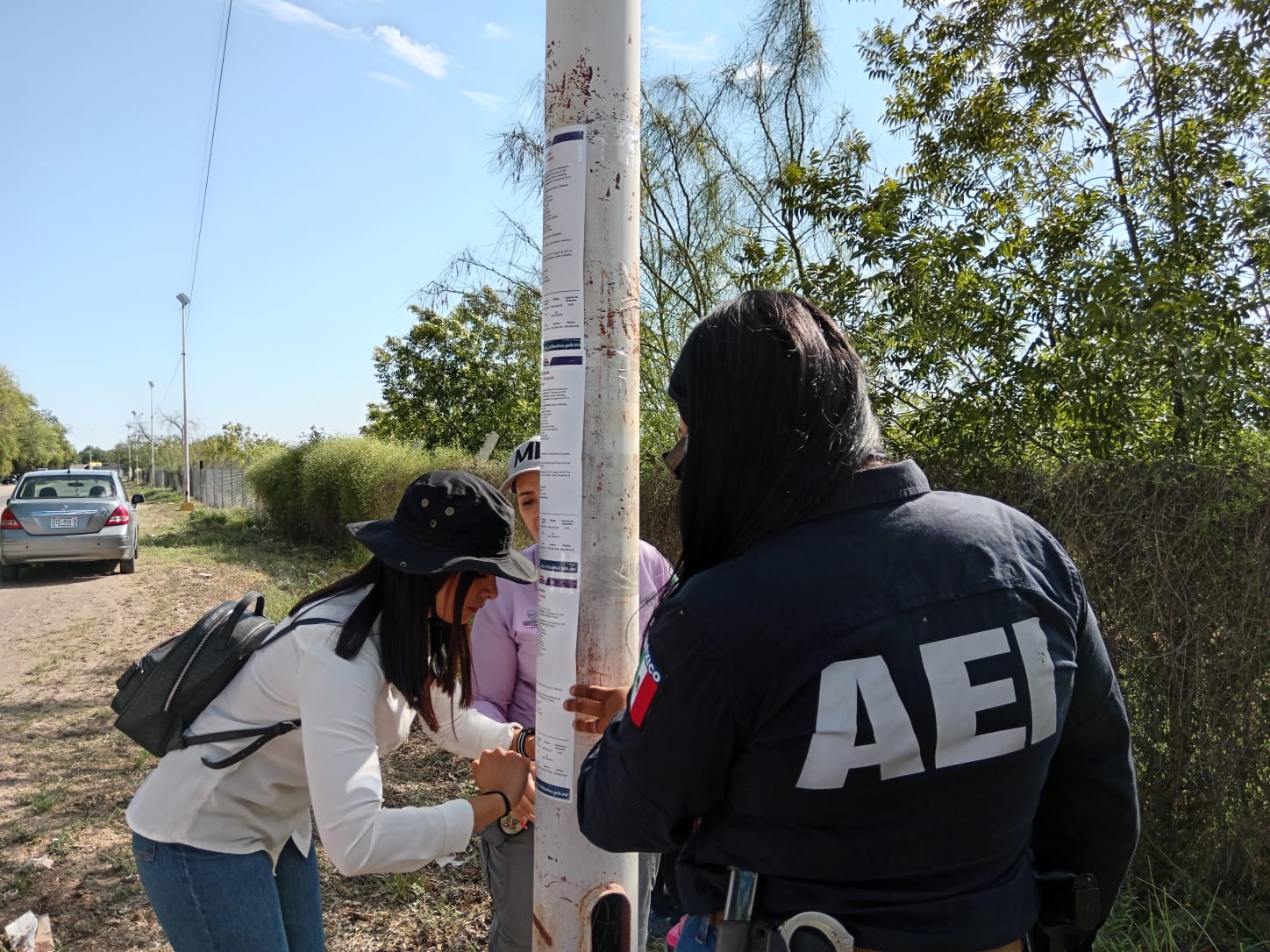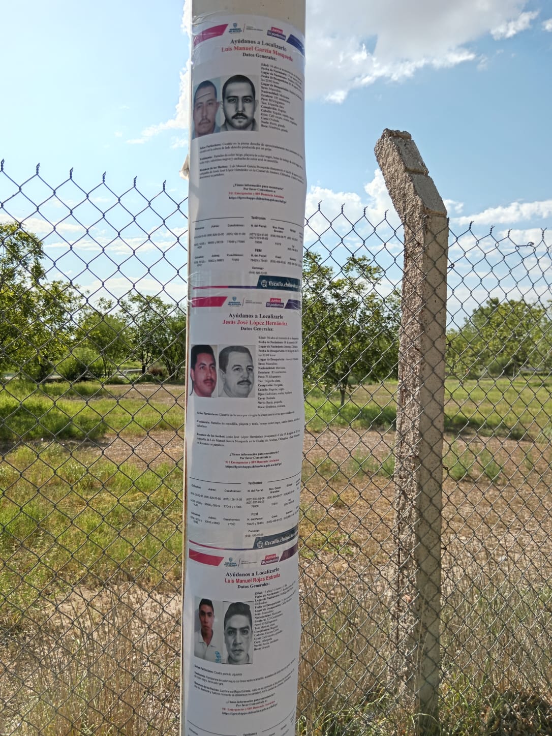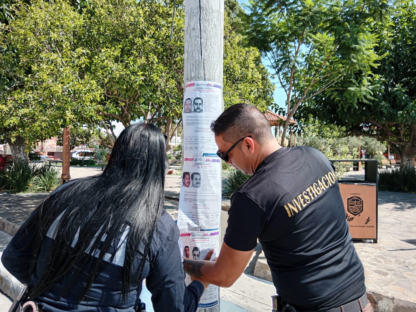 Jiménez, Chih.- Agentes del Ministerio Público y elementos de la Agencia Estatal de Investigación (AEI) de la Fiscalía de Distrito Zona Sur, realizaron un operativo coordinado de pega y difusión de pesquisas de tres personas que cuentan con estatus de desaparición en ciudad Jiménez.