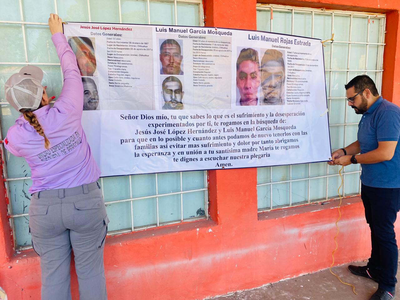 Durante la actividad, se colocaron pesquisas y lonas en la colonia El Molino, así como en el primer cuadro de ciudad Jiménez, en comercios y establecimientos de aforo común para la visibilidad de las cédulas de búsqueda, con el objetivo obtener datos que ayuden a la localización de dichas personas.
