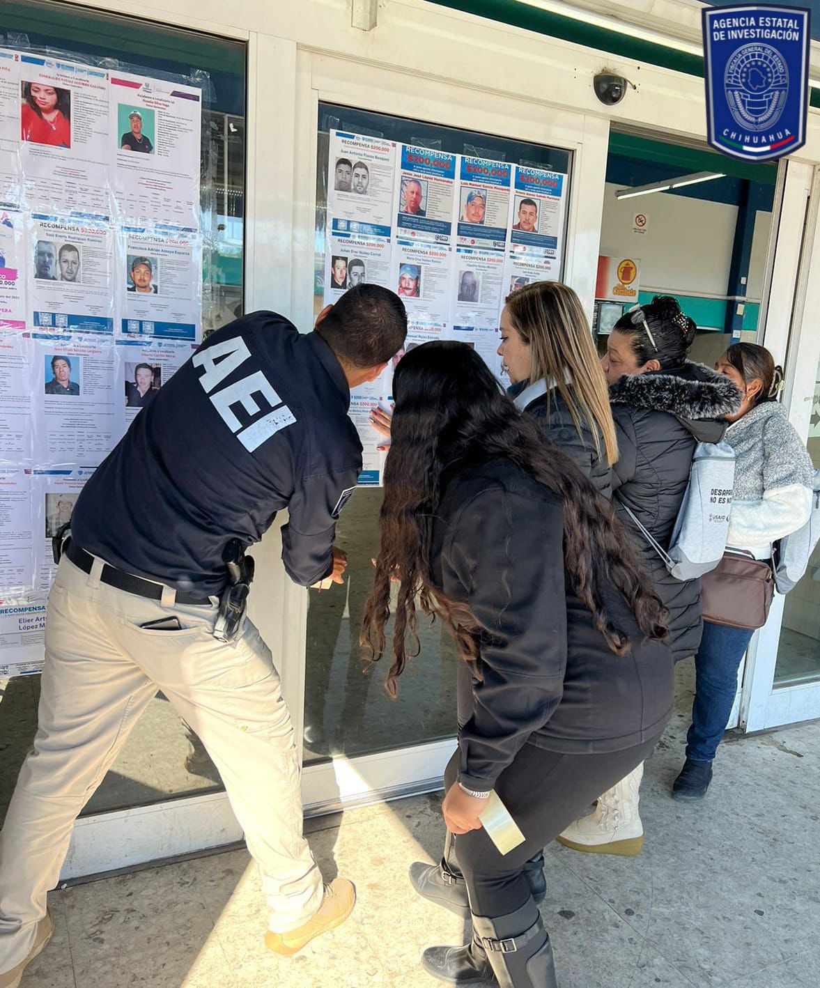 Parral, Chih.- Policías de Investigación adscritos a la Unidad de Personas No Localizadas y Desaparecidas de la Fiscalía de Distrito Zona Sur, acompañadas por familiares de personas ausentes, realizaron la colocación de pesquisas en lugares de acceso común para solicitar apoyo de la ciudadanía.