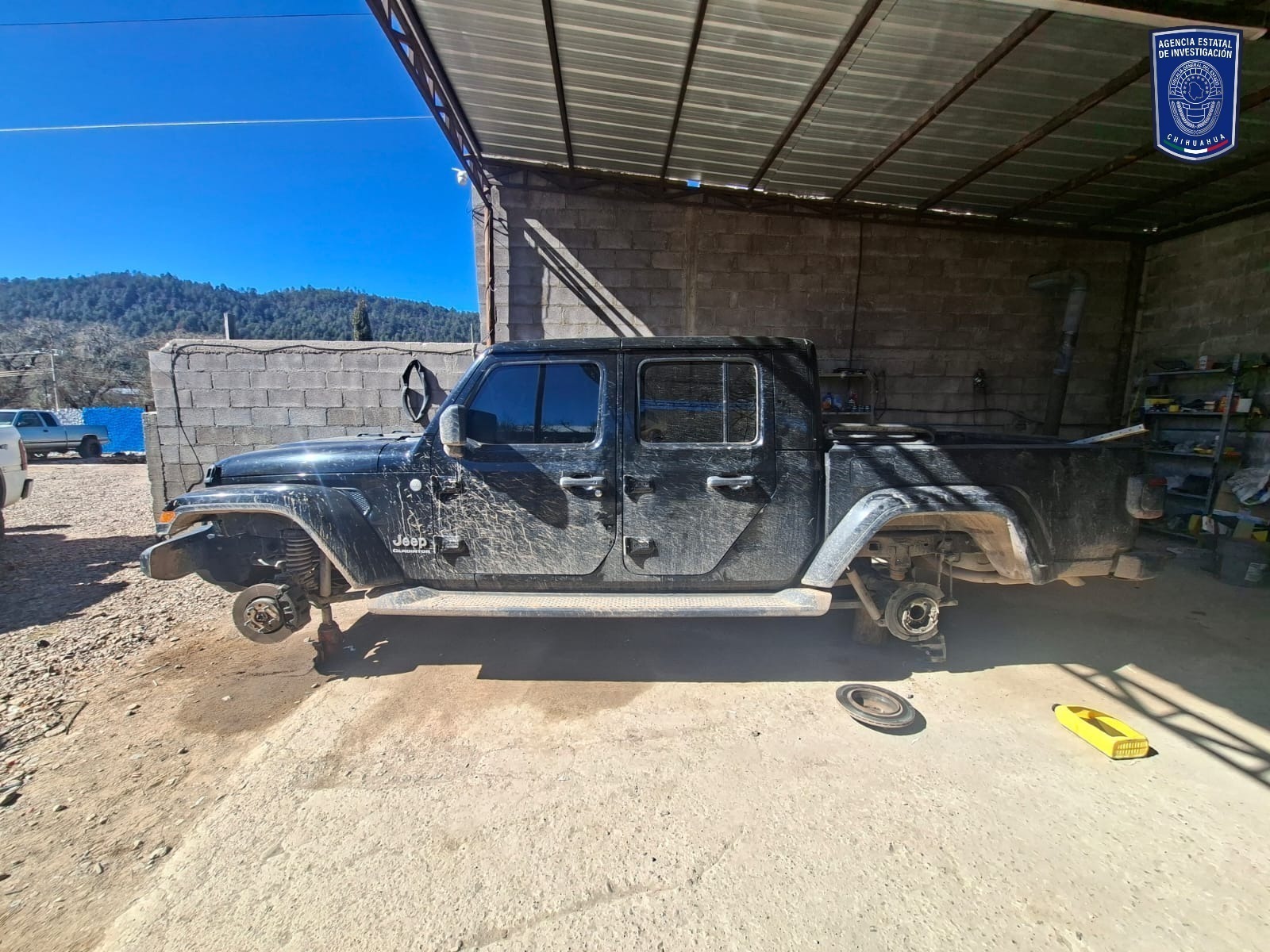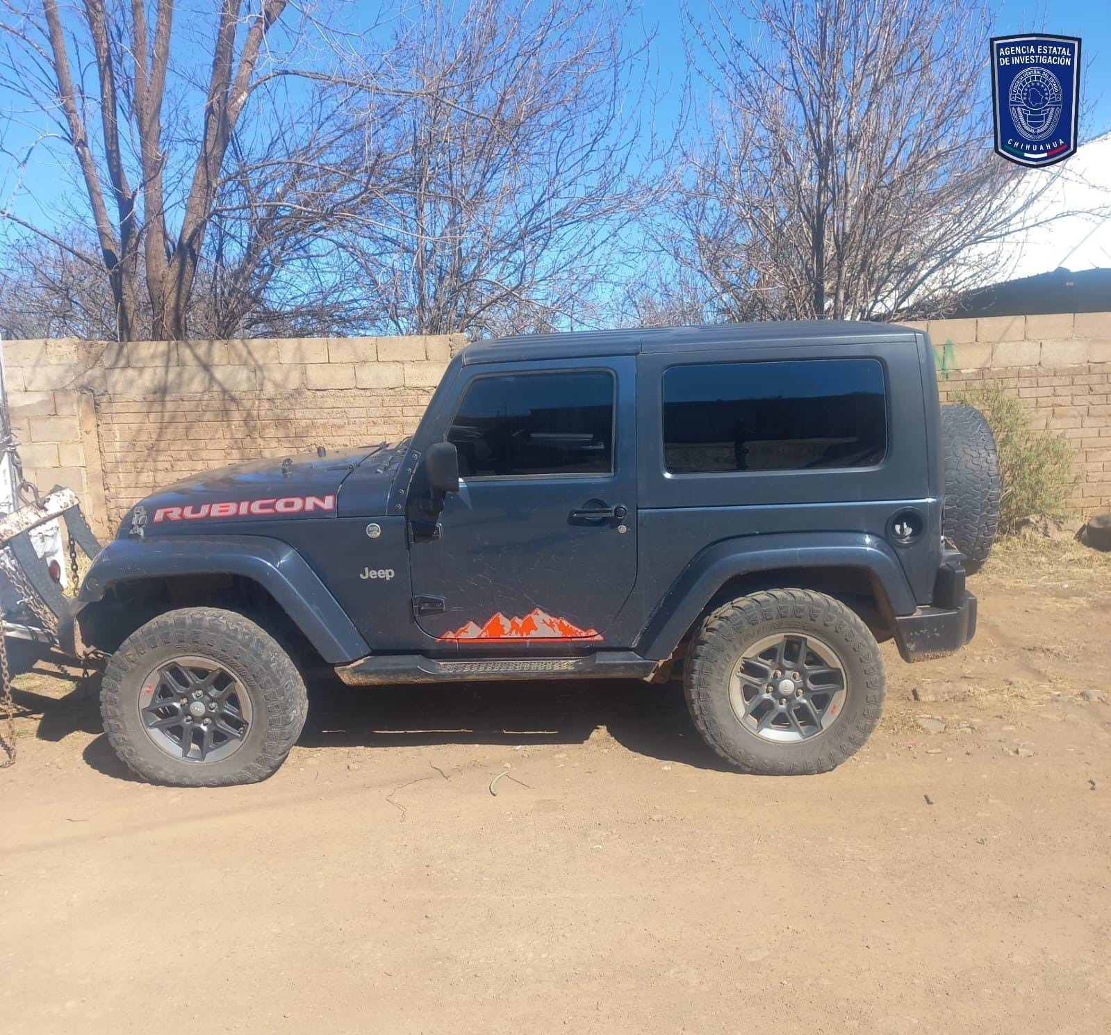 En las calles 21 y Nicolás Bravo de la colonia Internacional, en la ciudad de Madera, localizaron un vehículo de la marca Jeep, línea Wrangler, modelo 2008, color azul, sin placas de circulación, con reporte de robo, interpuesto 07 de septiembre del 2022, en Tucson Arizona, Estados Unidos.