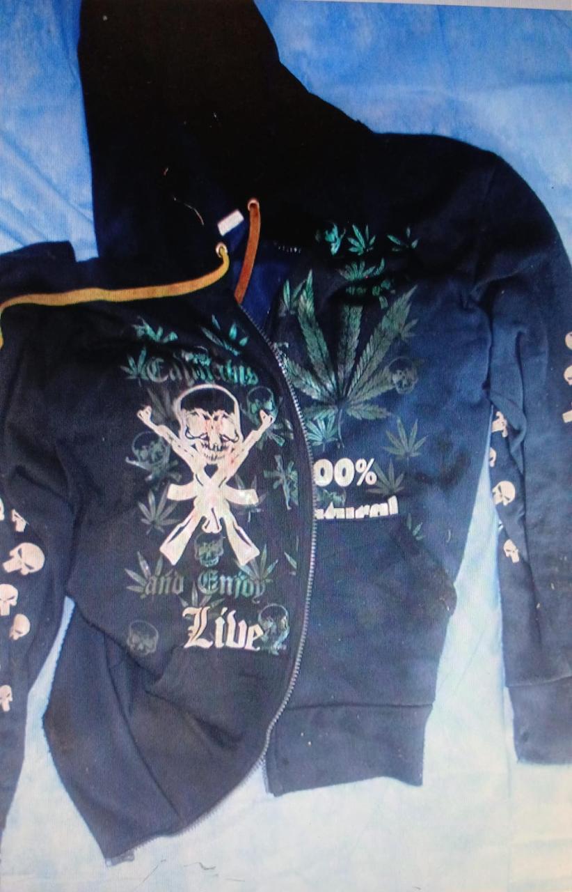 Vestía sudadera color azul con gorro, camisa roja, playera azul, pantalón de mezclilla azul y zapatos negros.