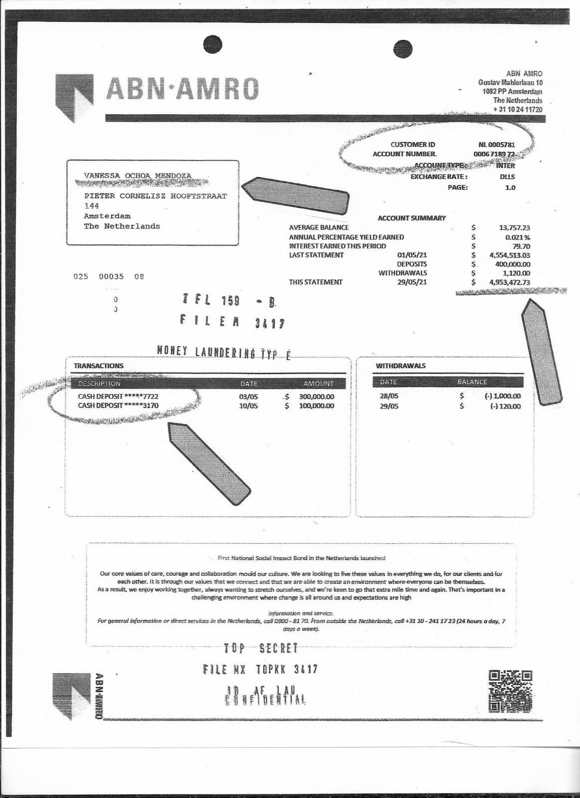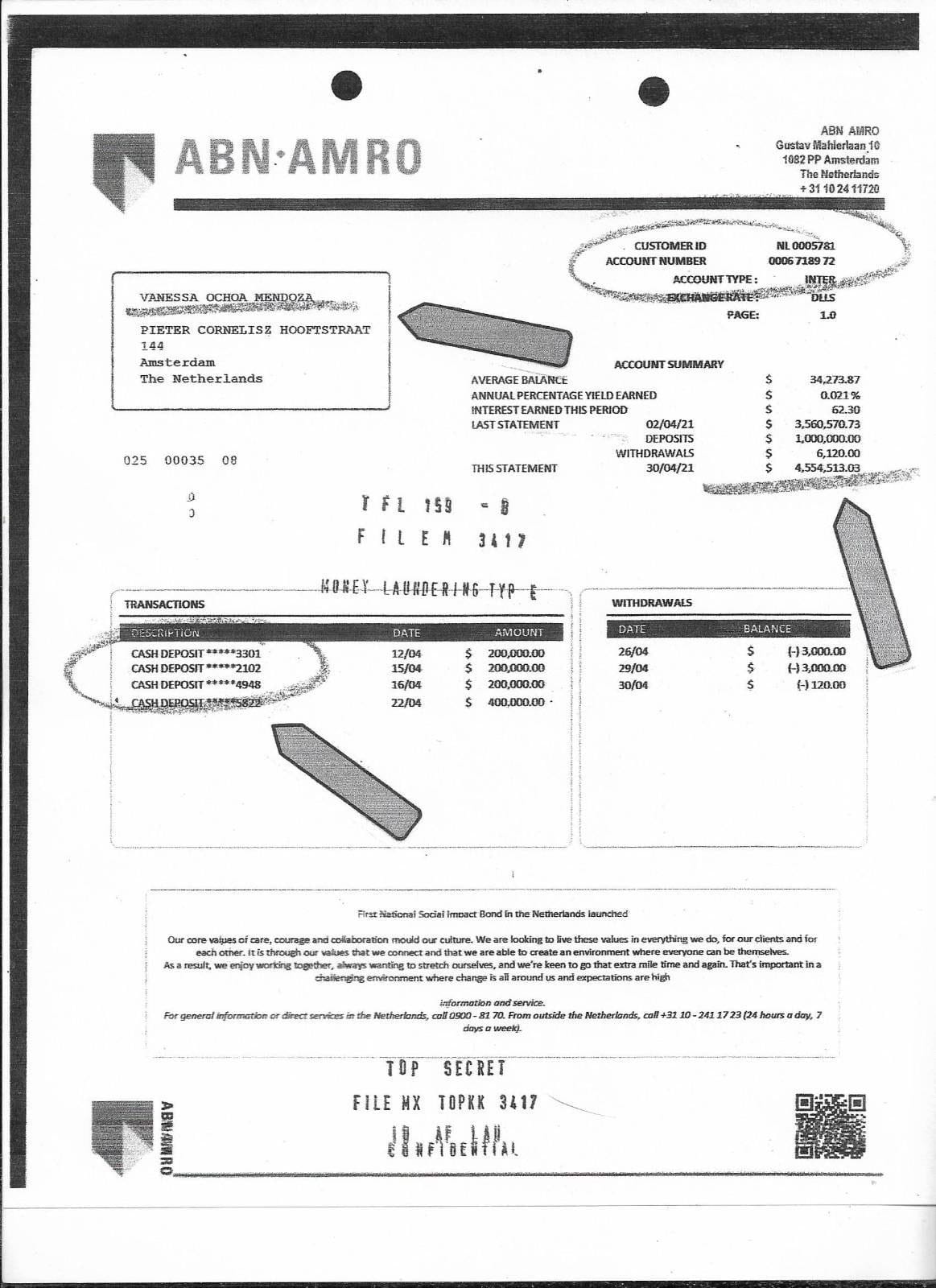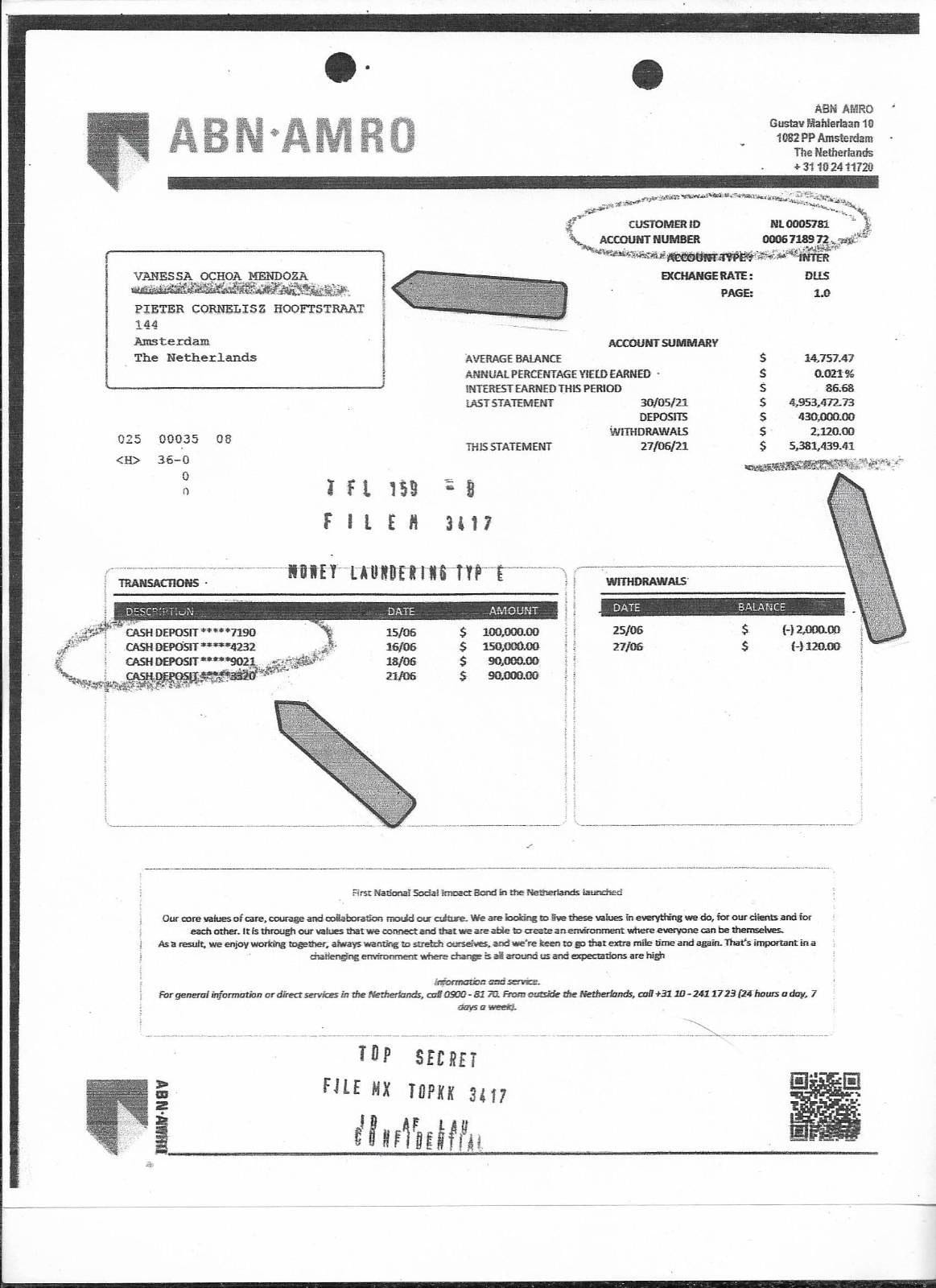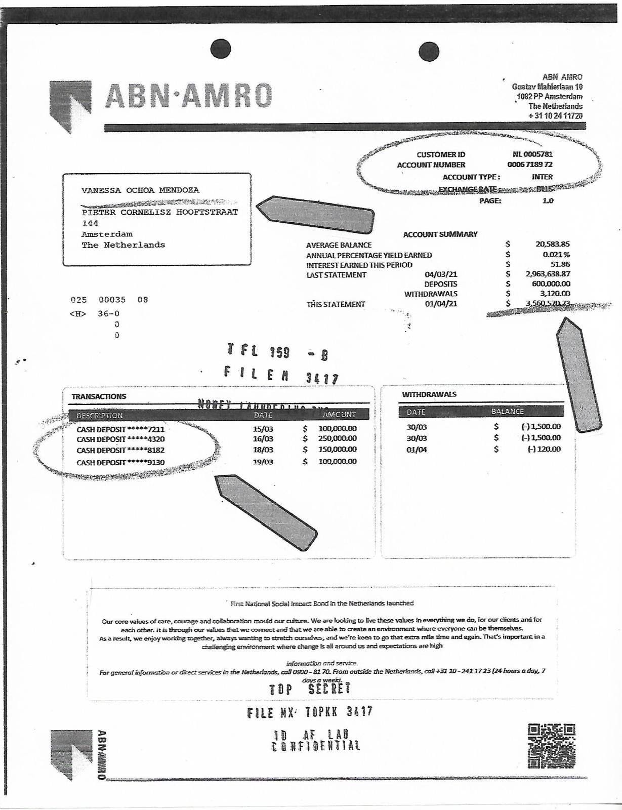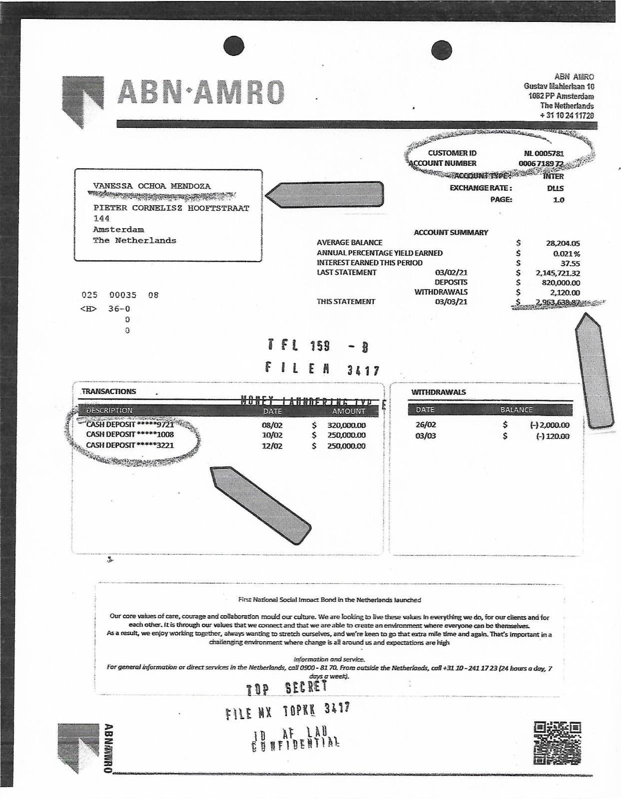 Hacia finales de ese mismo año, y gracias al seguimiento de cuentas bancarias y otras actividades financieras, el Departamento del Tesoro de Estados Unidos identificó a Vanessa Ochoa Mendoza— hermana del alcalde—como titular de una cuenta bancaria en el banco ABN AMRO, en Ámsterdam, Países Bajos, con fondos que superaban los cinco millones de dólares, lo cual representó una prueba significativa de los presuntos vínculos financieros del alcalde con el cártel mexicano.