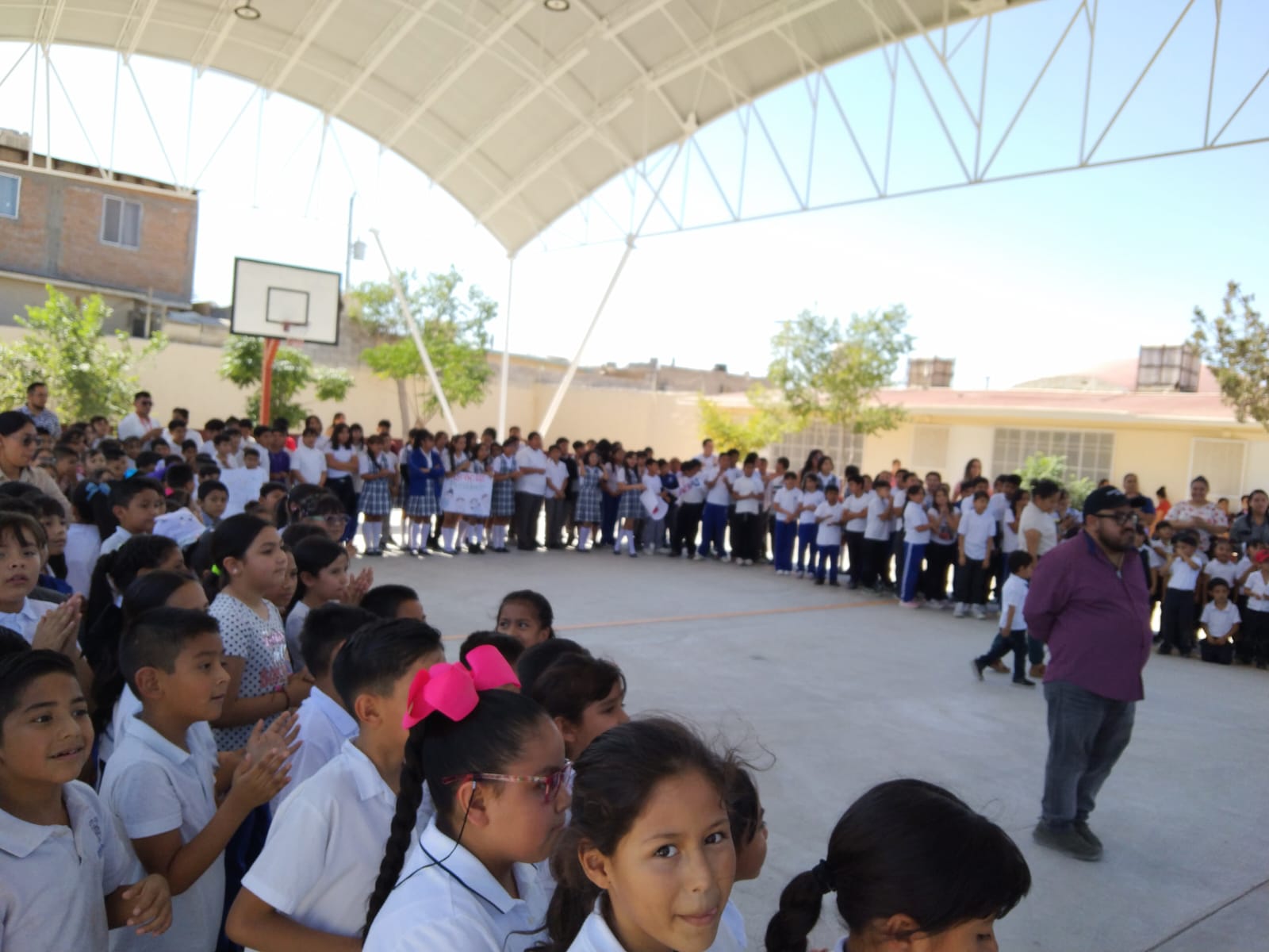 El anuncio se llevó a cabo en presencia de niños de la Primaria Francisco Matus Misselli y del Jardín de Niños 1 de Mayo, donde se hizo la entrega oficial de dos domos con un valor superior a 1 millón 300 mil pesos cada uno.
