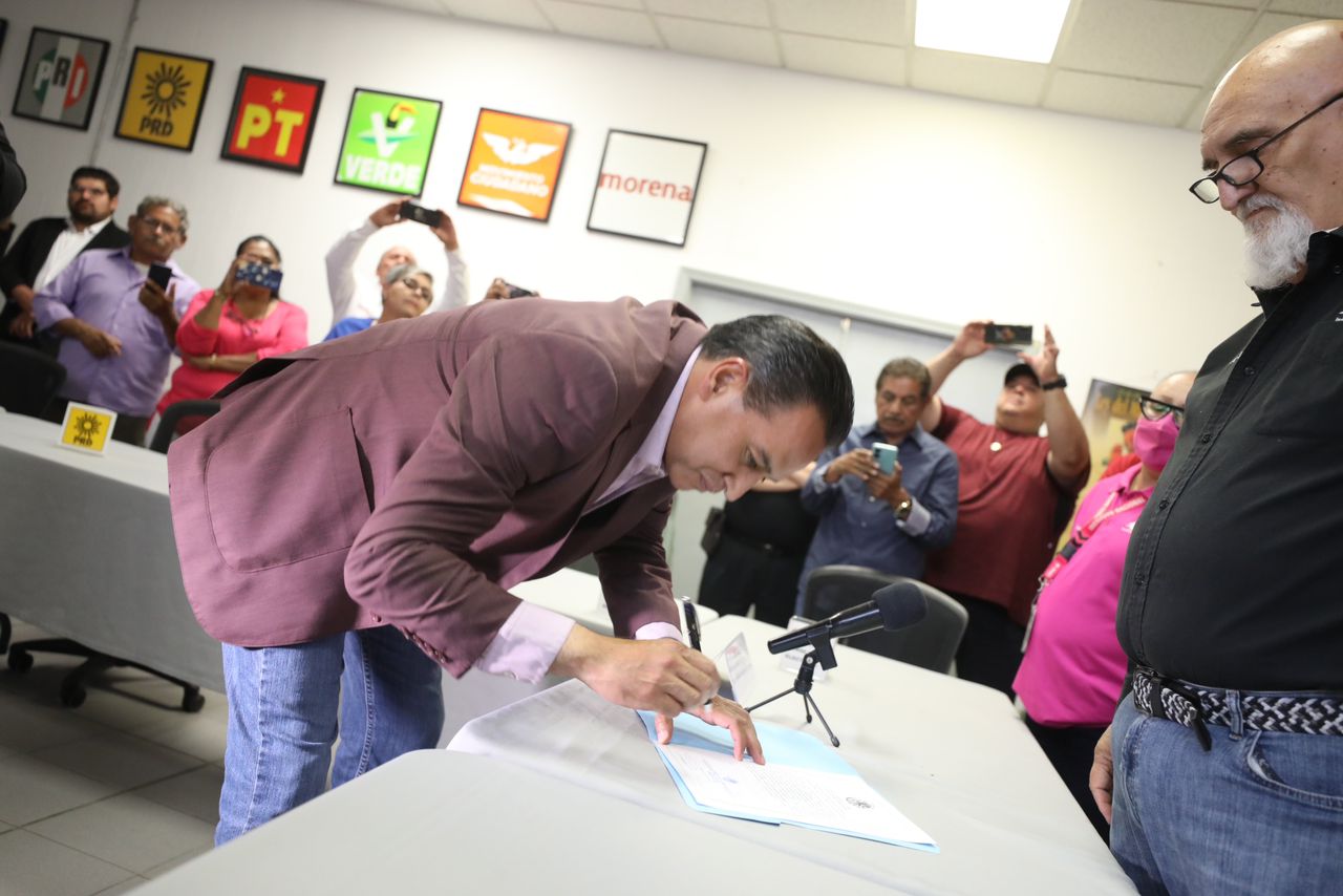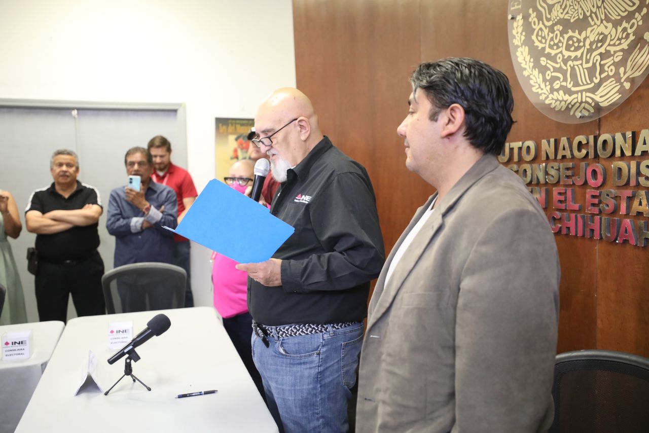 Ciudad Juárez.- Está tarde Alejandro Pérez Cuéllar, candidato a Diputado Federal por el Distrito 04 de la Coalición “Sigamos Haciendo Historia” (Morena, PT, PVEM), recibió la constancia de mayoría en la Junta Distrital del INE.