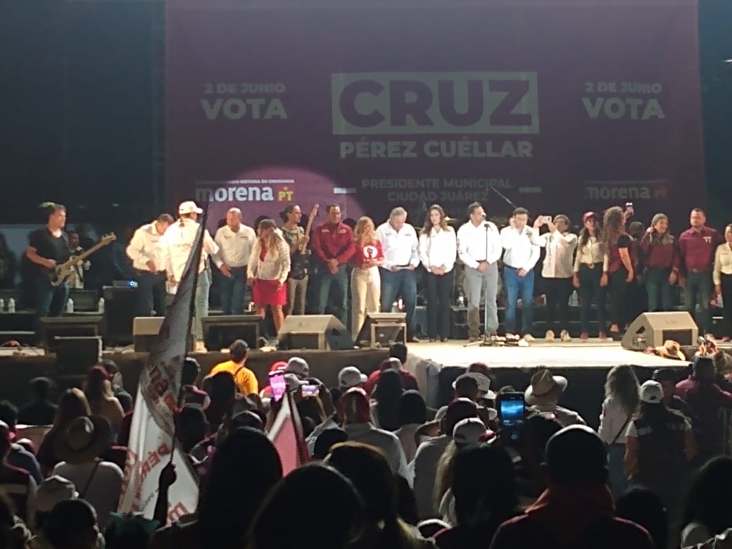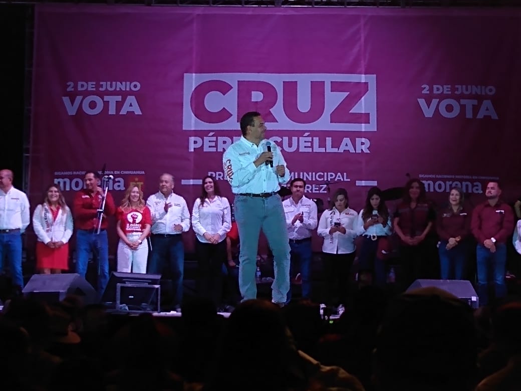 Ciudad Juárez.- Fue ante más de 30 mil fronterizos que el candidato a presidente municipal Cruz Pérez Cuéllar se presentó esta noche en dónde explicó el porque tiene ganas de seguir gobernando para los juarenses.