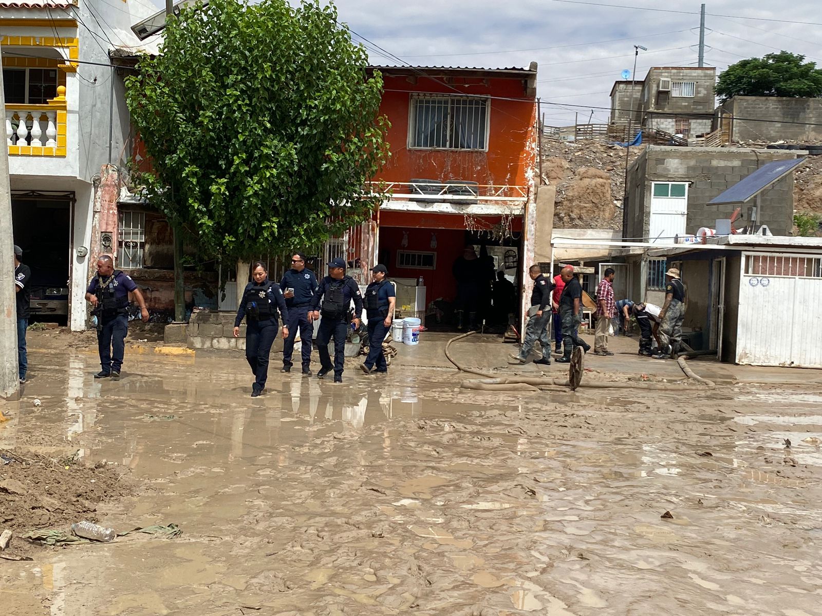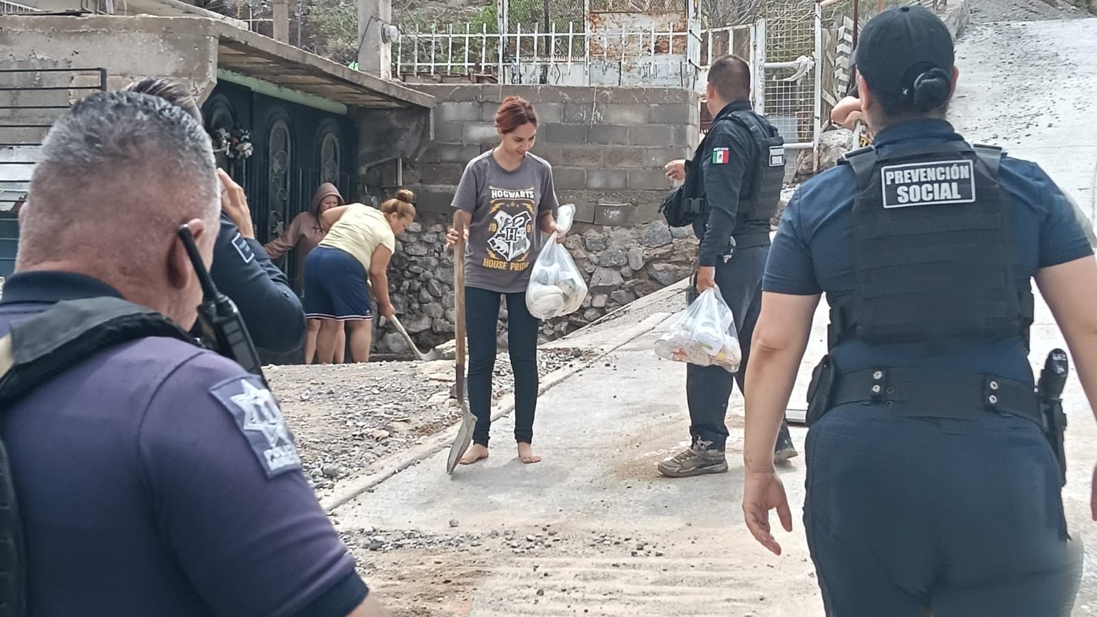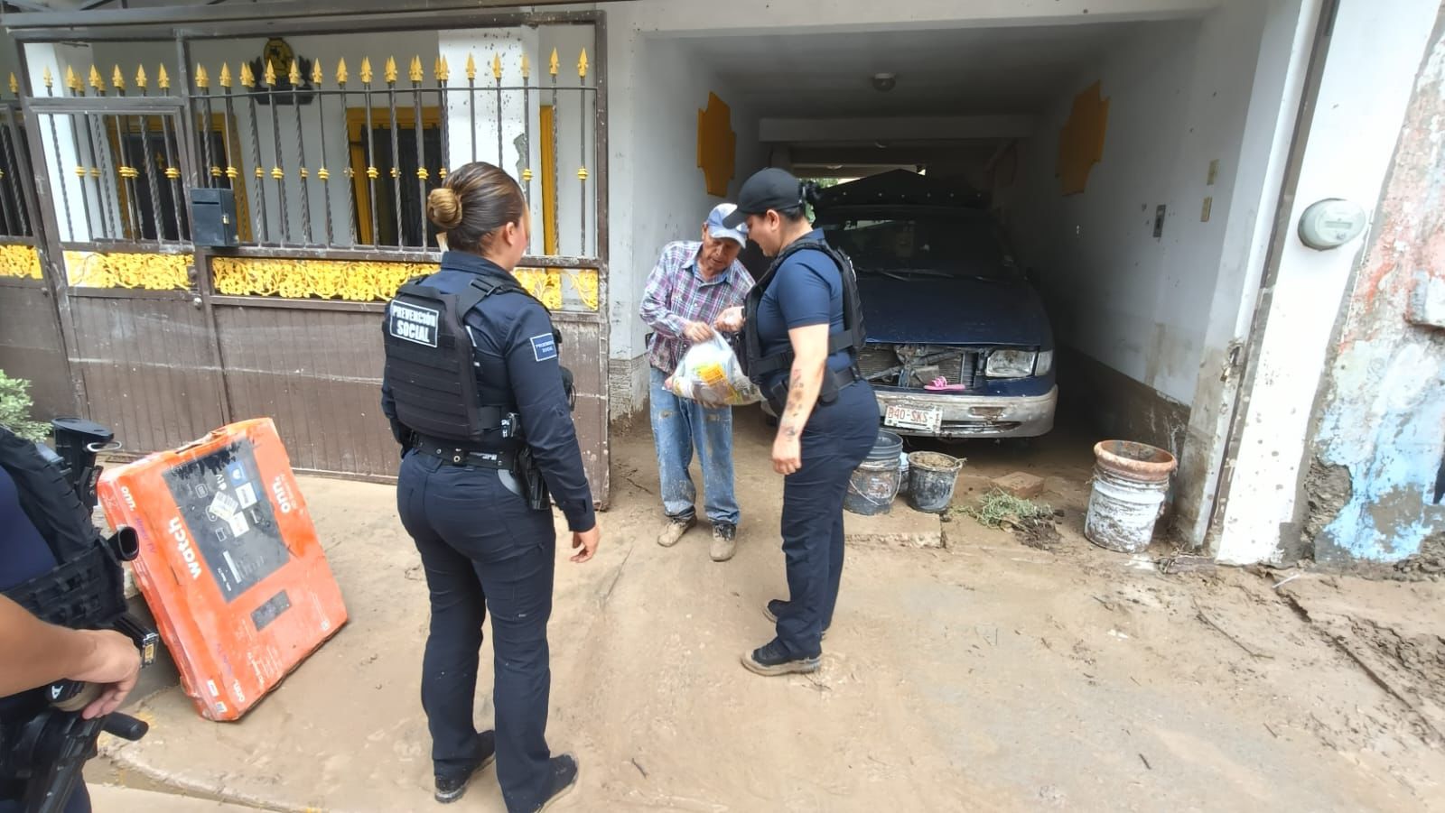 Ciudad Juárez-. En un acto humanitario elementos de la Secretaría de Seguridad Pública Municipal pertenecientes a la dirección de Prevención Social, acudieron a brindar apoyo a familias afectadas por la lluvia con entrega de despensas.