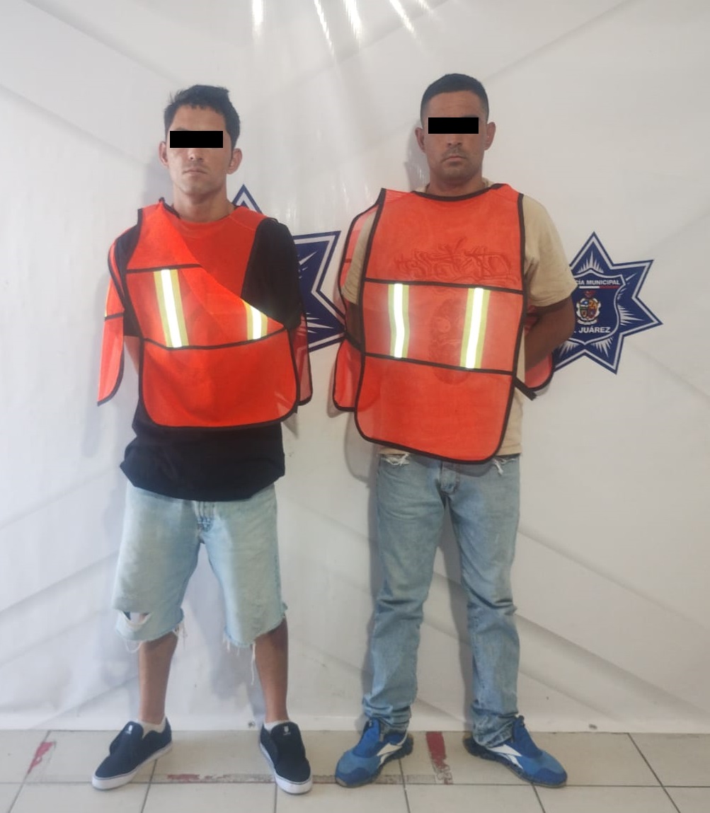Ciudad Juárez.- Elementos de la Secretaría de Seguridad Pública Municipal arrestaron a los hermanos Edgar Humberto A. F. y Erick David A. F., por su presunta responsabilidad en la comisión de los delitos de posesión de vehículo con reporte de robo y contra la salud.