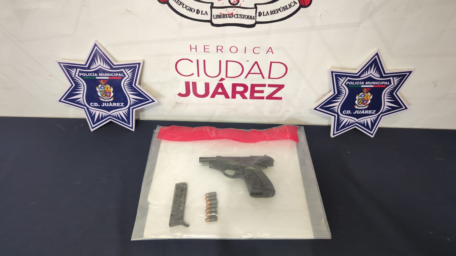 Ciudad Juárez.- Elementos de la Secretaría de Seguridad Pública Municipal capturaron a Omar Samuel F. C., por su presunta responsabilidad en la comisión de delitos contra la ley federal de armas de fuego y explosivos.