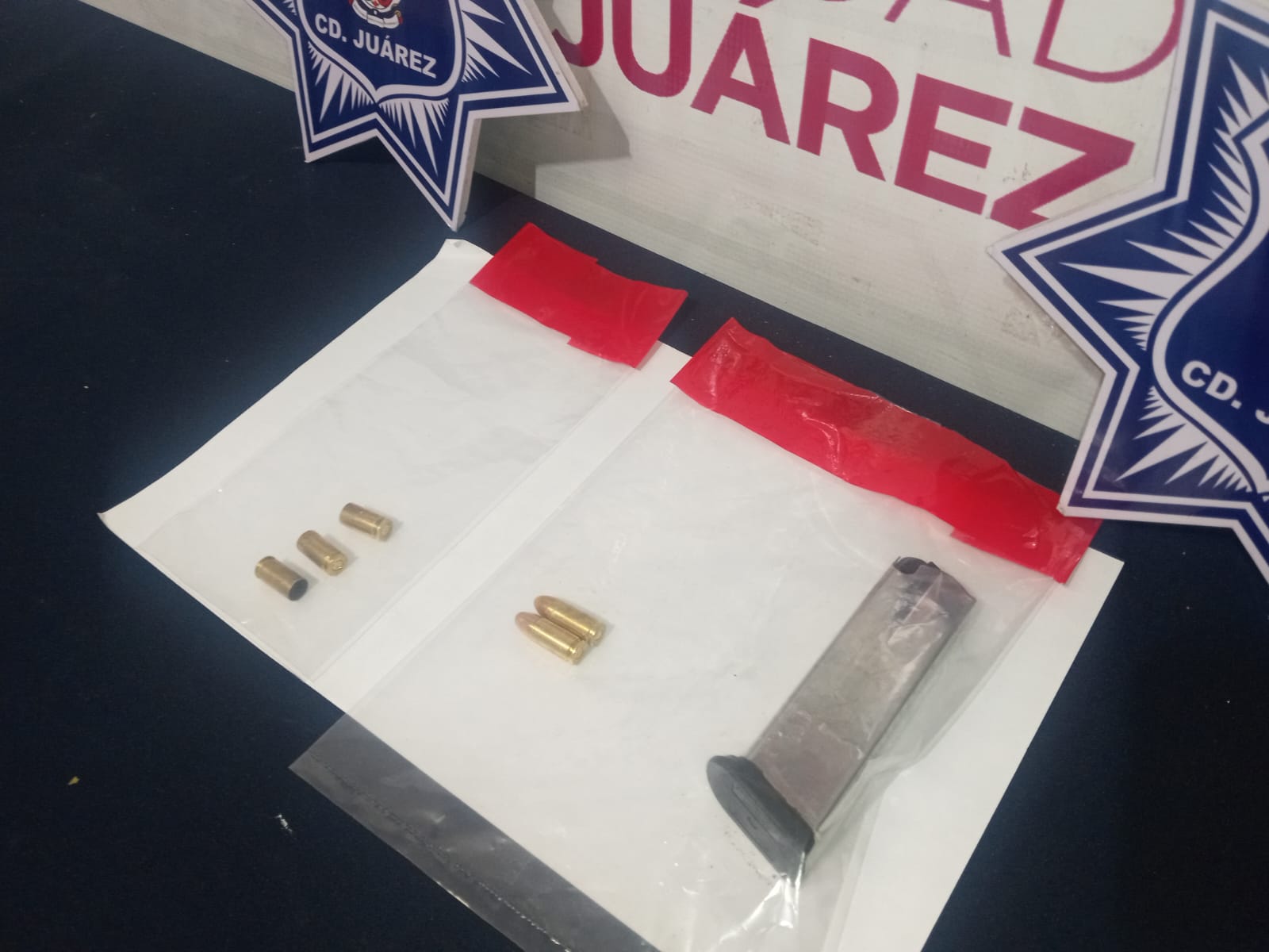 Motivo por el cual le marcaron el alto al conductor por protocolos de seguridad y al realizarle una inspección preventiva se le localizó en medio del asiento un cargador para arma de fuego abastecido con dos cartuchos útiles calibre 9 milímetros, así como tres casquillos percutidos debajo de uno de los asientos, procediendo con su detención.