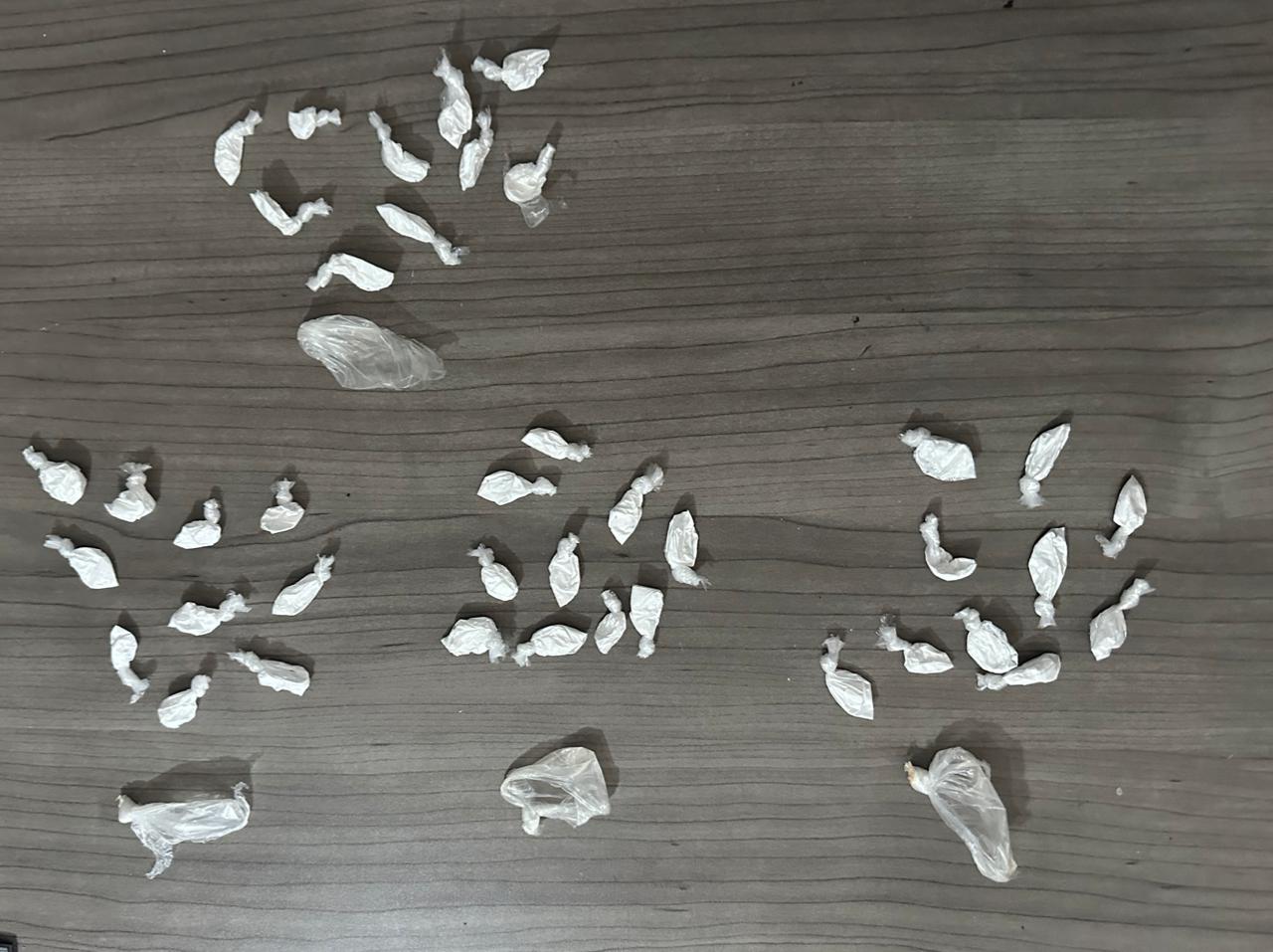 • 07 envoltorios transparentes que en su interior contienen un polvo fino de color blanco con características similares a la cocaína, con un peso de 6.8 gramos.
