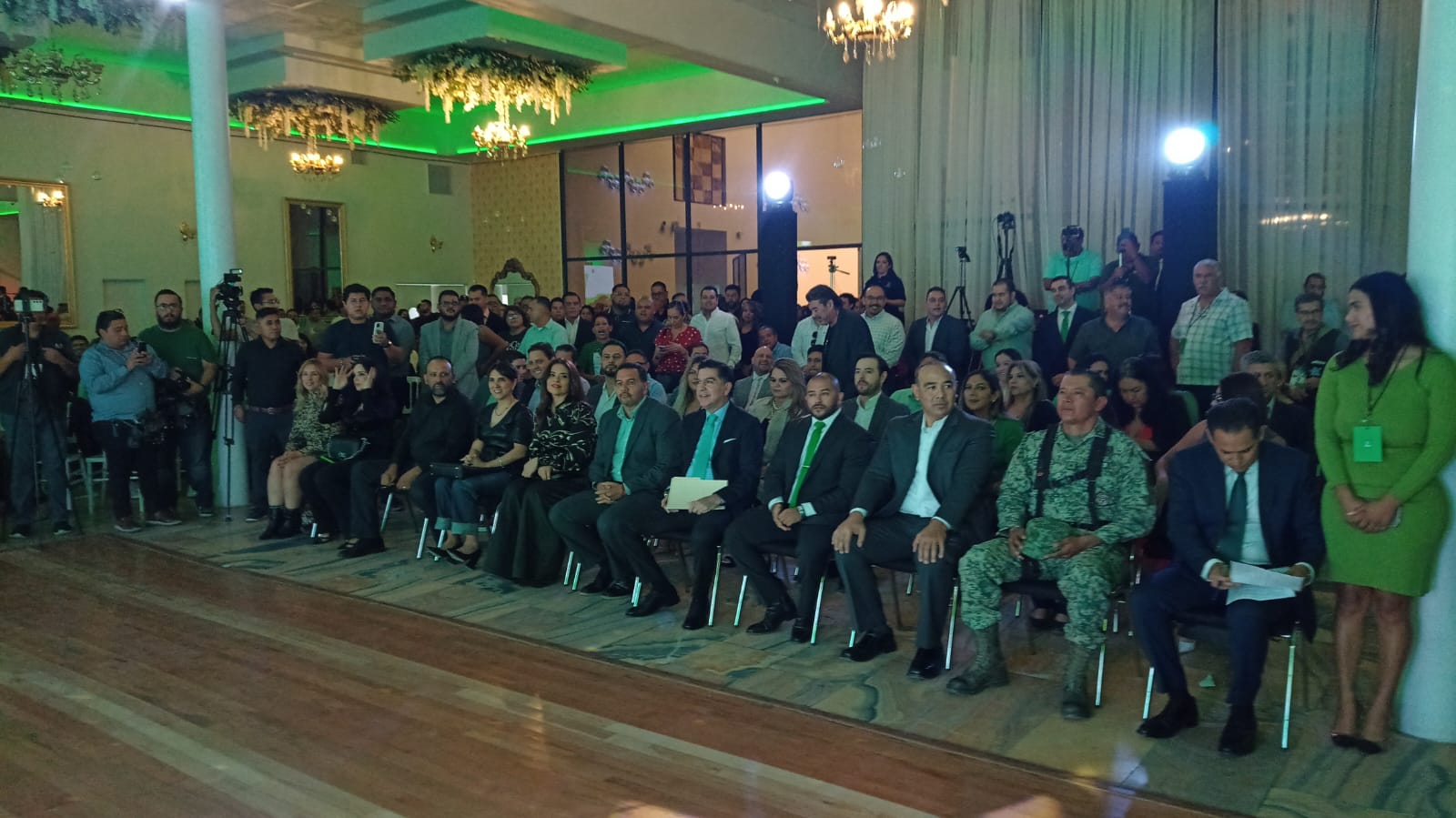 En el evento destacaron la presencia del presidente municipal, Cruz Pérez Cuéllar, y del diputado federal Alejandro Pérez Cuéllar, quienes son tío y padre del nuevo dirigente.