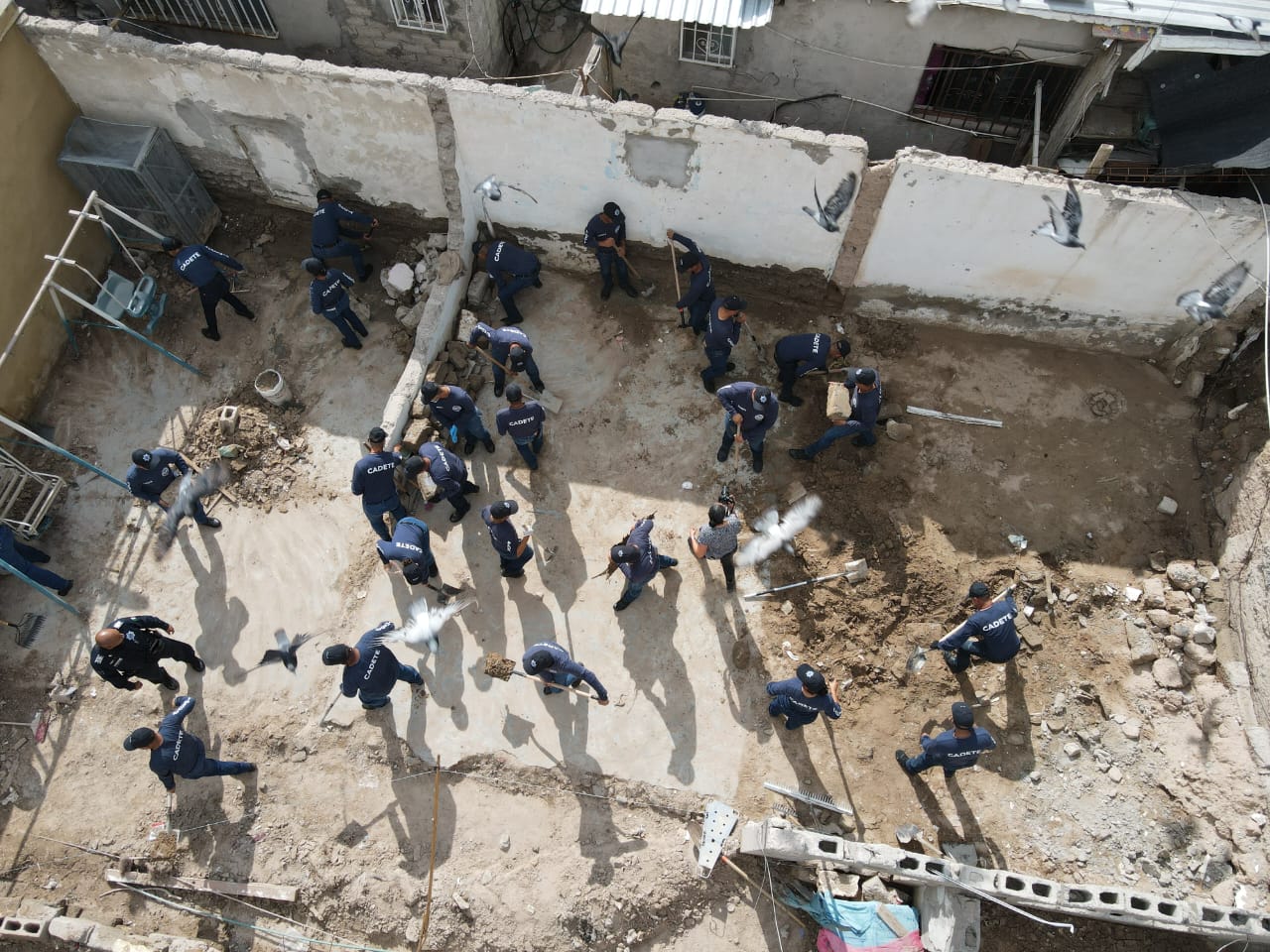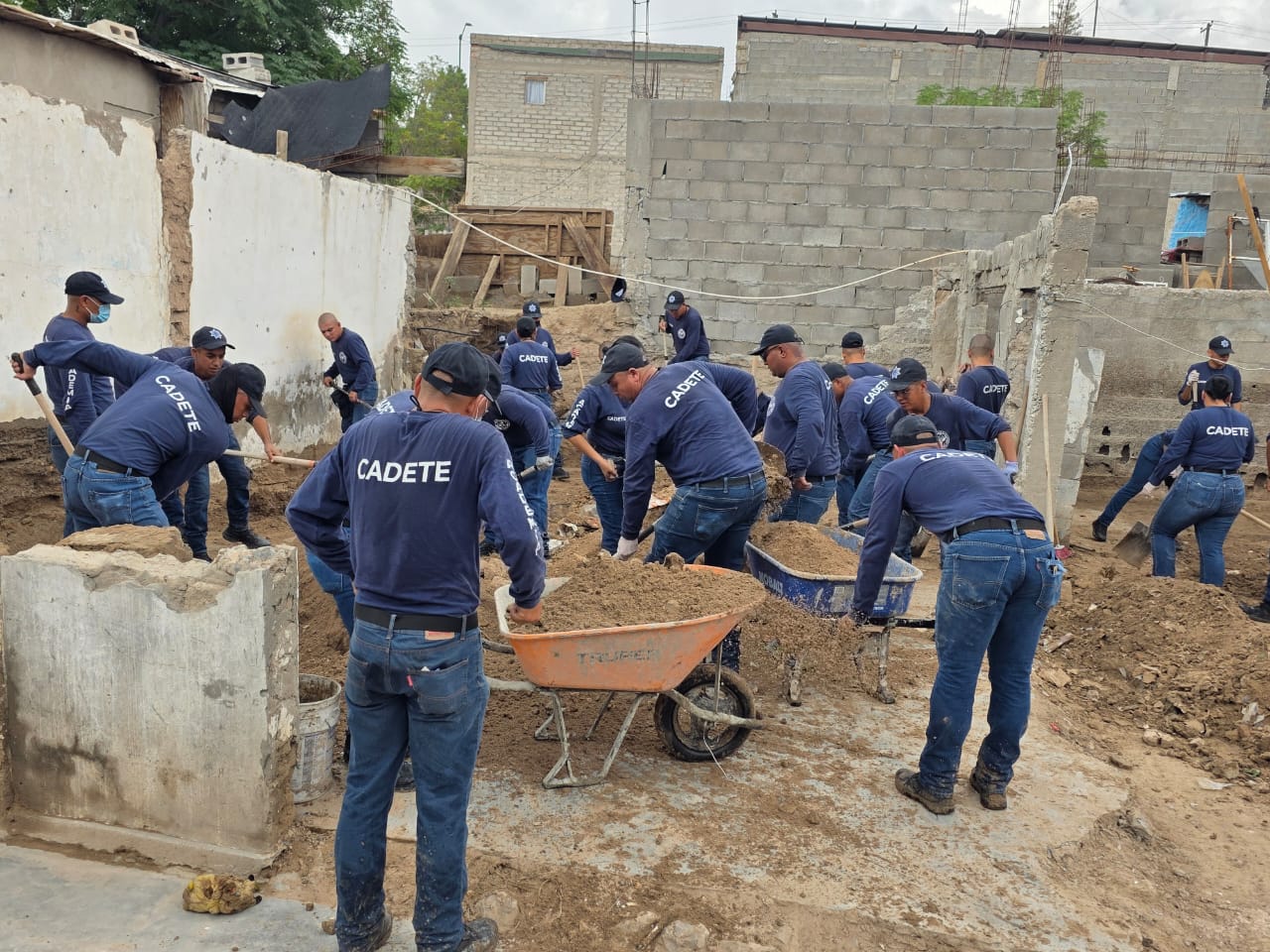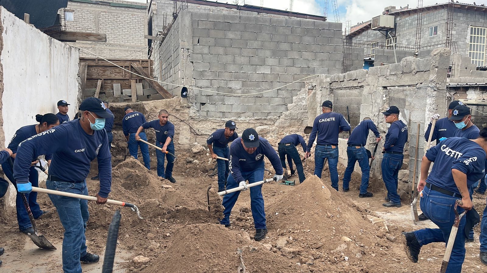 Un grupo de 50 futuros policías son los que llegaron hasta la colonia Francisco Sarabia para ayudar a cuatro familias que perdieron la totalidad de sus muebles y pertenencias.