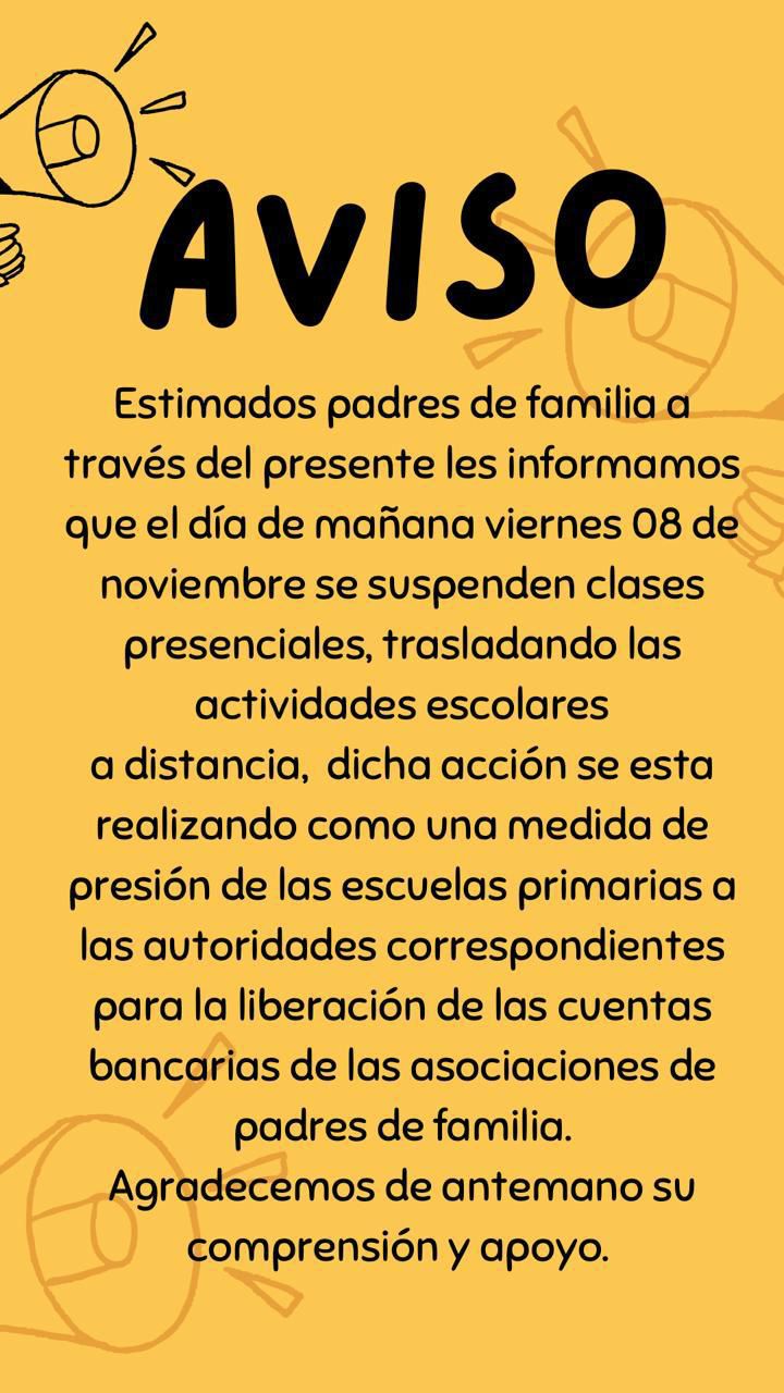El problema comenzó hace cuatro meses cuando las autoridades estatales cambiaron las cuentas bancarias de las escuelas, eso ha impedido a los directivos y asociaciones de padres de familia acceder a los fondos provenientes de las cuotas escolares. “Desde hace cuatro meses no se ha podido hacer uso de esos recursos, afectando gastos esenciales como mantenimiento, reposición de vidrios, y compra de gas, justo cuando se aproximan los frentes fríos”, explicó.