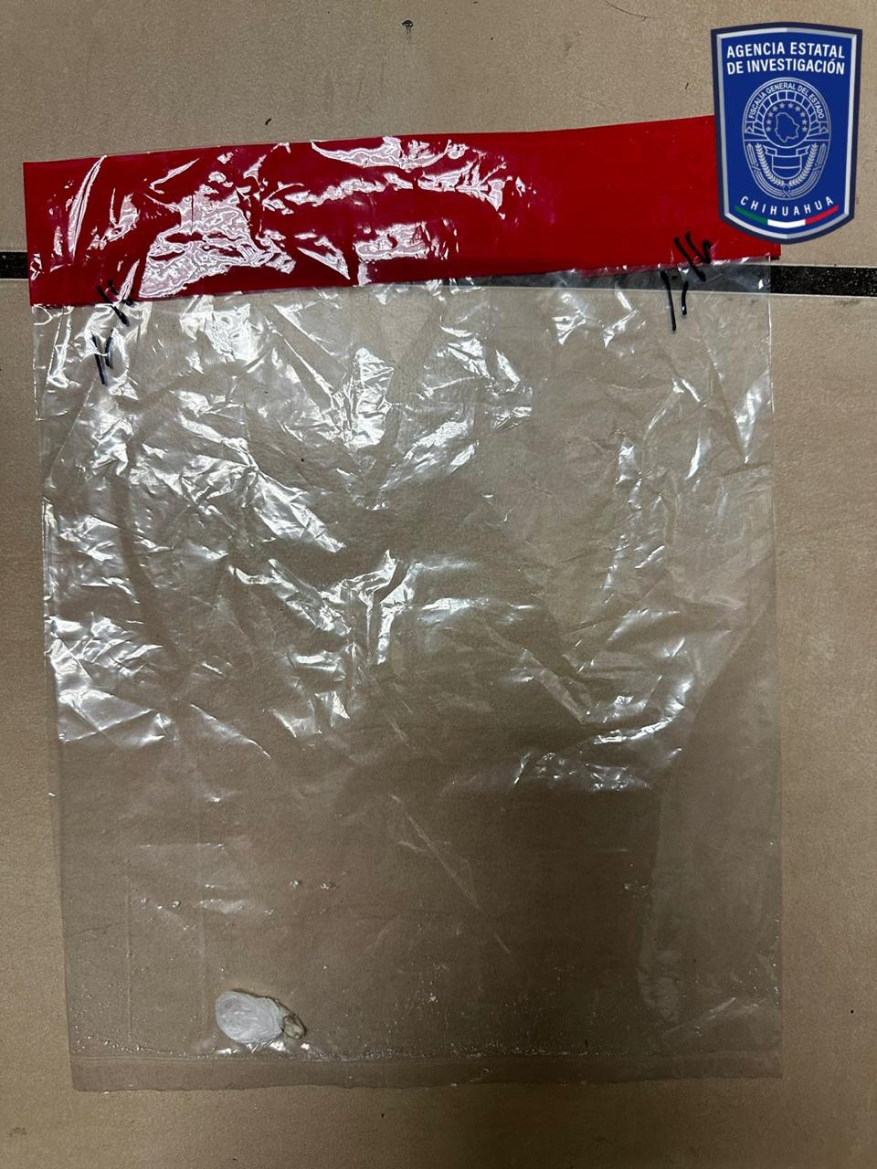 Se le aseguró un envoltorio de plástico transparente que en su interior contiene un polvo fino de color blanco con las características propias de la cocaína en polvo (residuos).