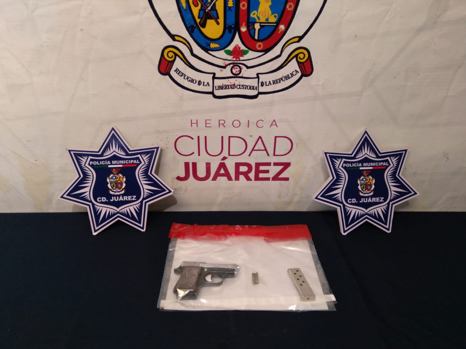 Ciudad Juárez-. Elementos de la Secretaría de Seguridad Pública Municipal detuvieron a Edgar Rafael J. E. y Miguel Ángel M. R., por su presunta responsabilidad en la comisión de los delitos de posesión de vehículo con reporte de robo, homicidio en grado de tentativa y delitos contra la ley federal de armas de fuego y explosivos.
