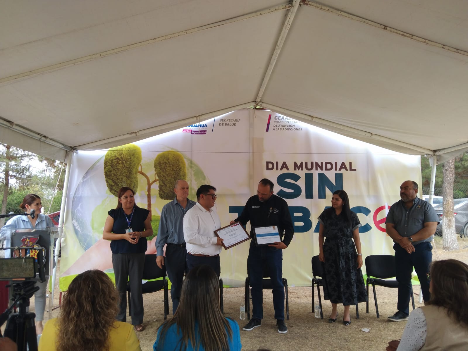 Ciudad Juárez.- Este viernes, la Dirección de Ecología Municipal fue oficialmente reconocida como una dependencia 100% libre de humo por parte de las autoridades del Gobierno del Estado. Este logro fue resultado de meses de trabajo y concientización en la dependencia y fue celebrado en el marco del Día Mundial Contra el Tabaco.