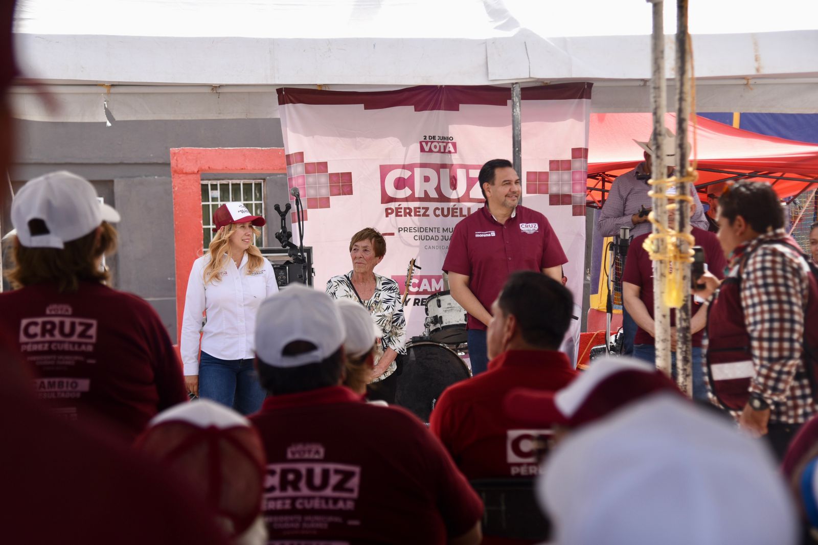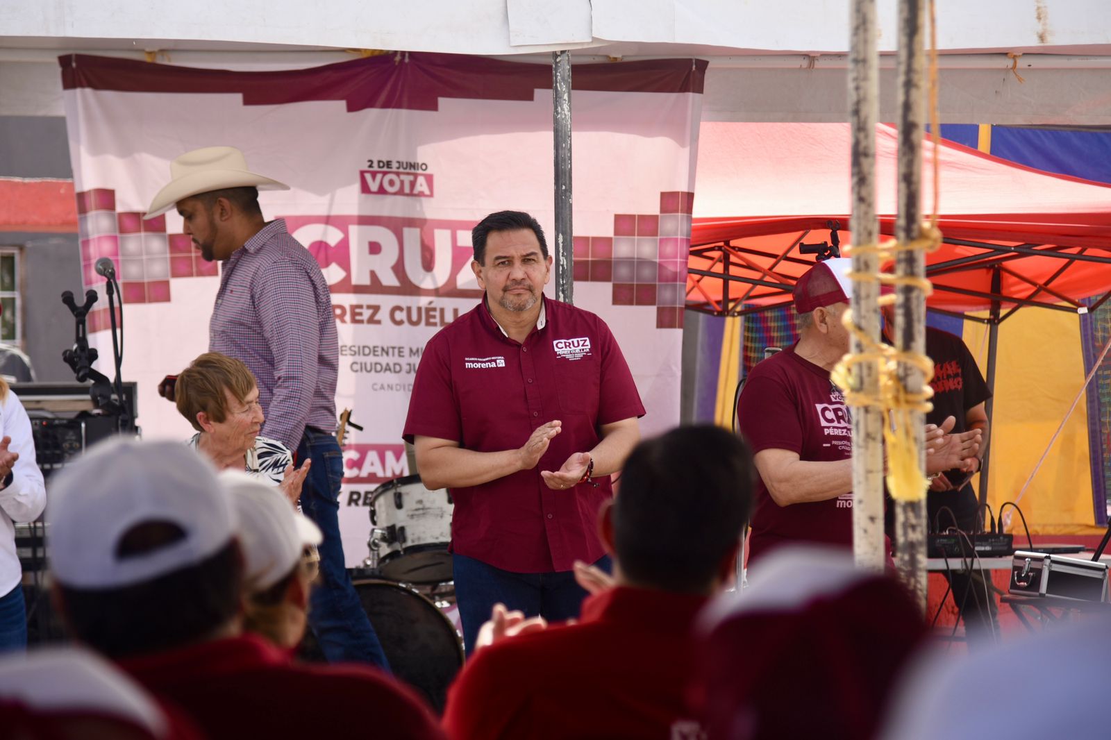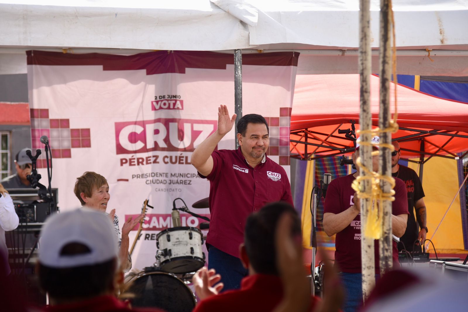 Ciudad Juárez, Chih. – En un ambiente de fiesta y entusiasmo, el candidato a la alcaldía de Ciudad Juárez por la coalición “Sigamos Haciendo Historia en Chihuahua”, Cruz Pérez Cuéllar, fue recibido por los habitantes del Valle de Juárez.