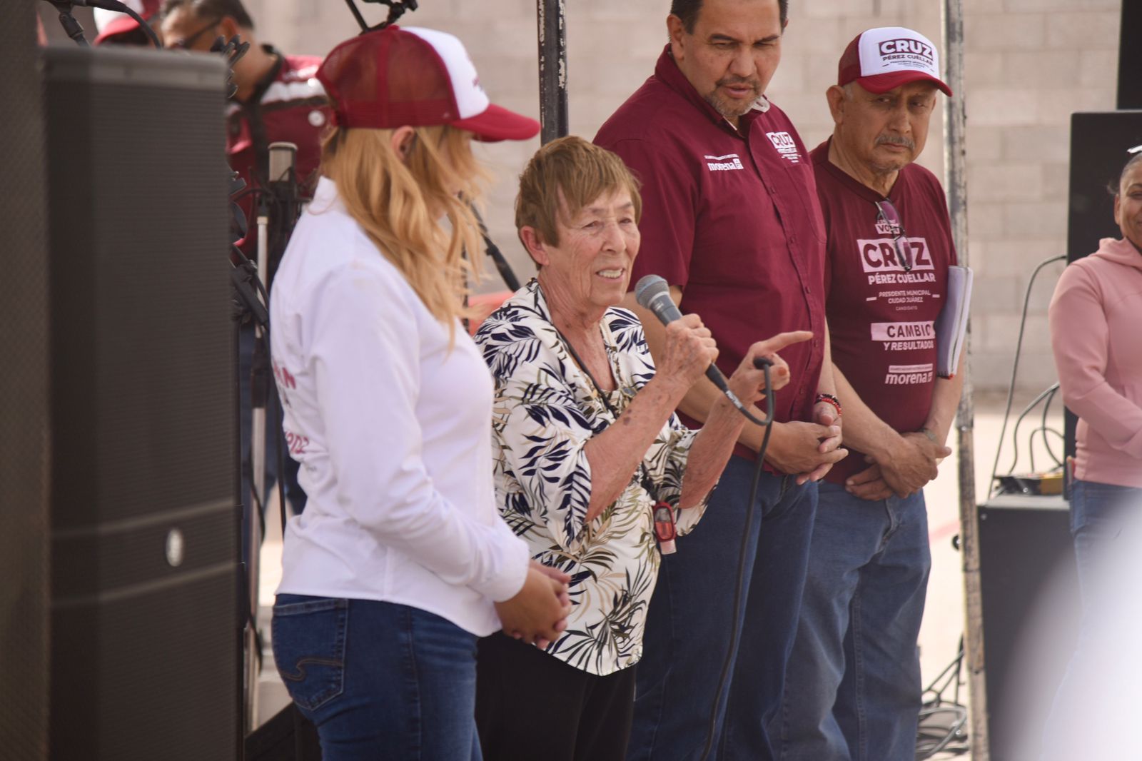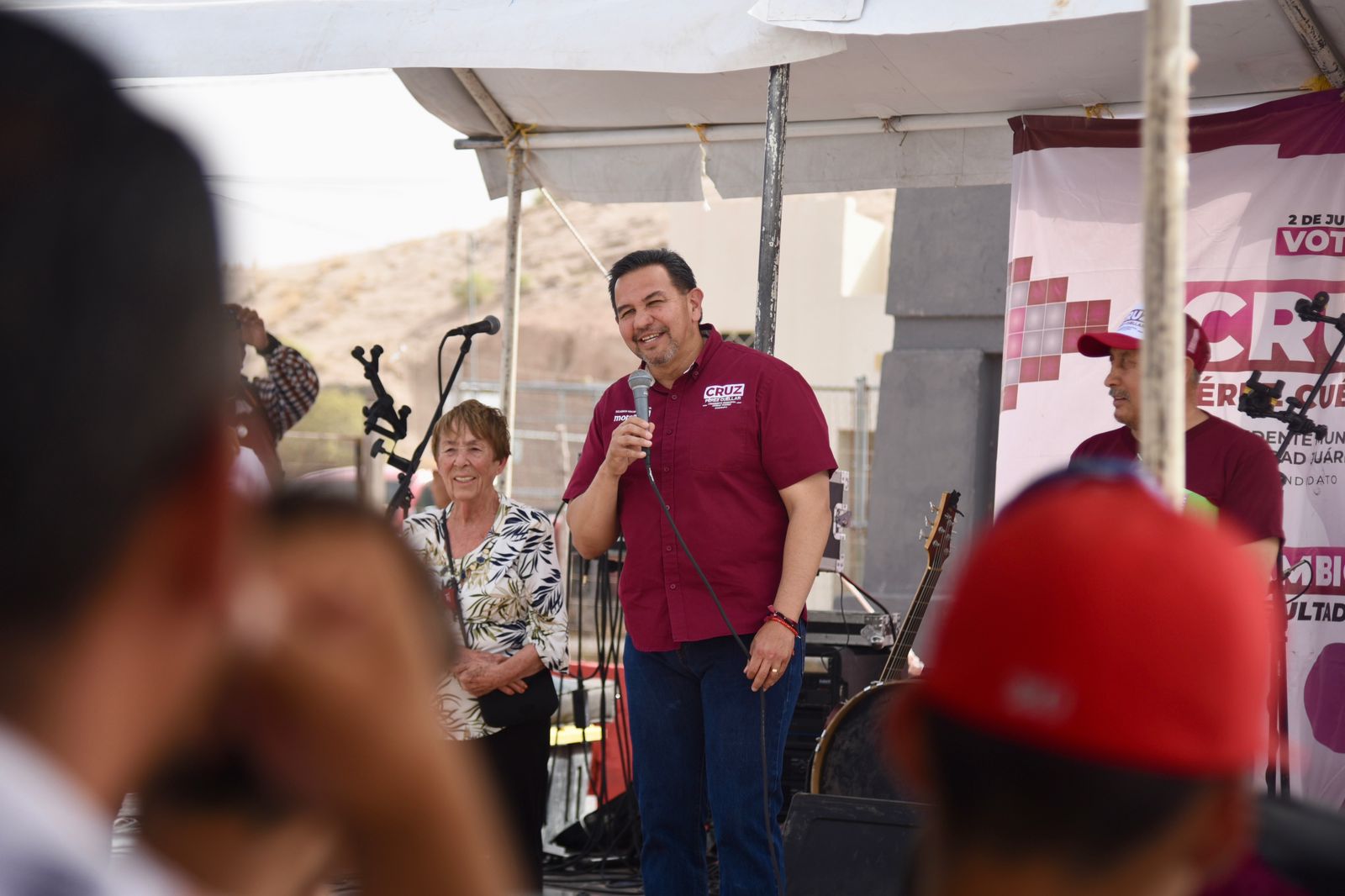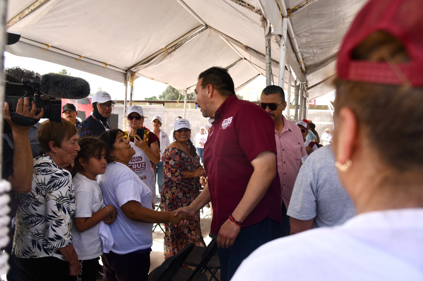 Ciudad Juárez, Chih. – En un ambiente de fiesta y entusiasmo, el candidato a la alcaldía de Ciudad Juárez por la coalición “Sigamos Haciendo Historia en Chihuahua”, Cruz Pérez Cuéllar, fue recibido por los habitantes del Valle de Juárez.