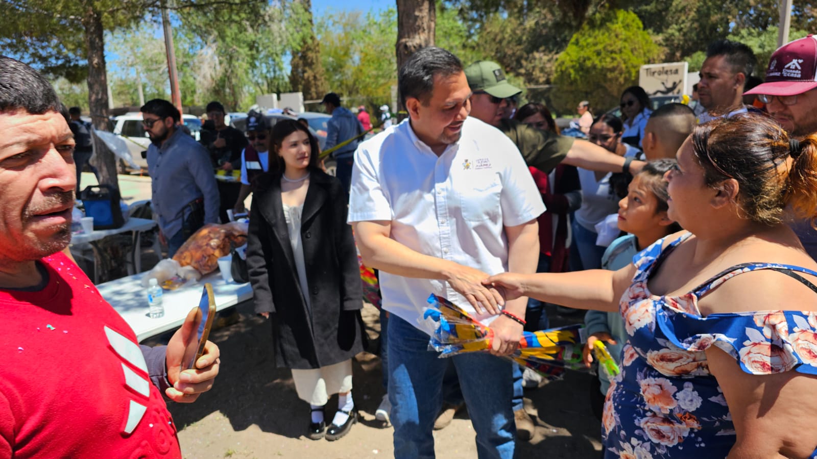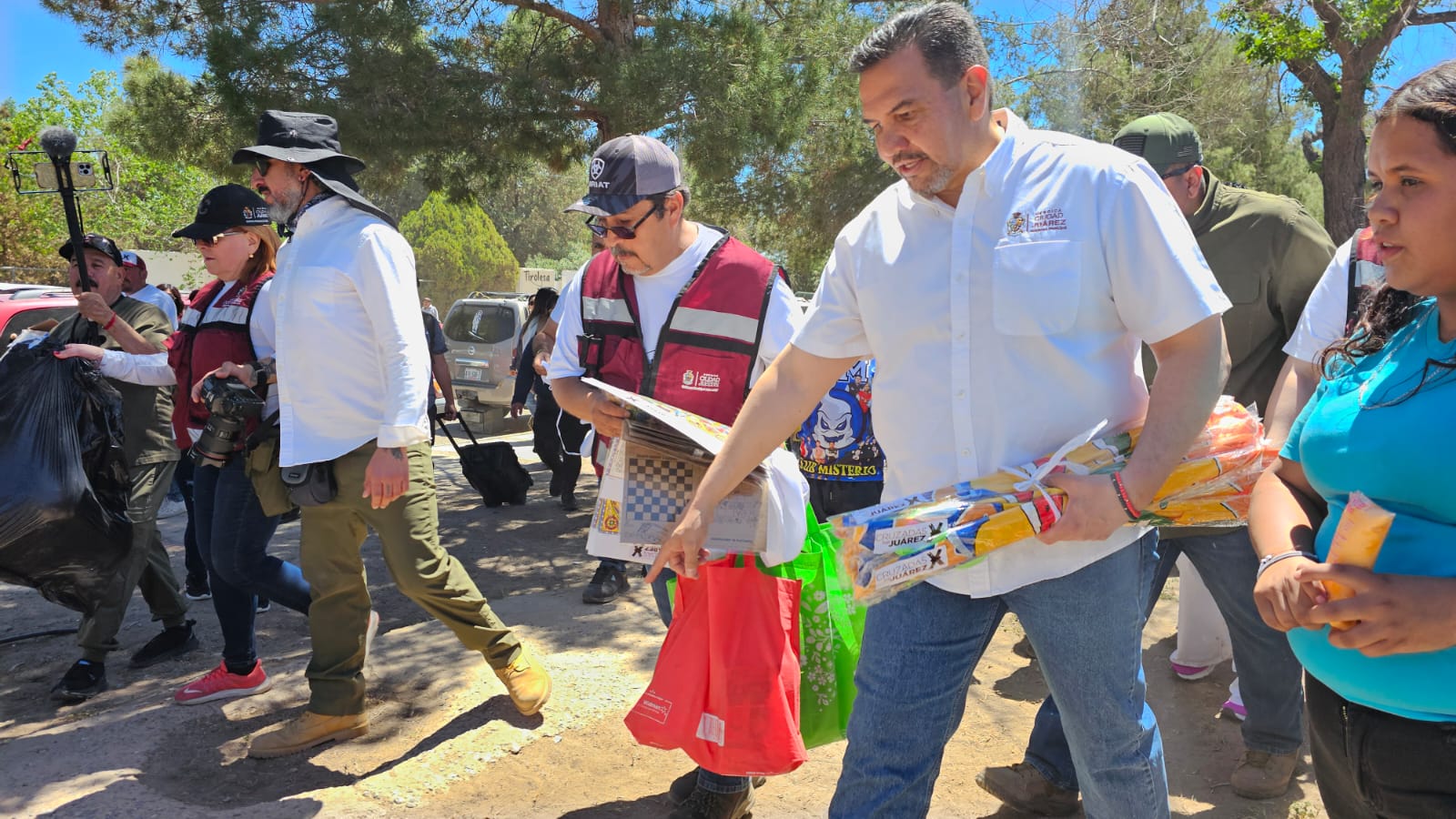 El alcalde también se acercó a los comerciantes que se instalaron frente al Museo de Arqueología e Historia de El Chamizal. A ellos les entregó mandiles y termos como reconocimiento a su labor.