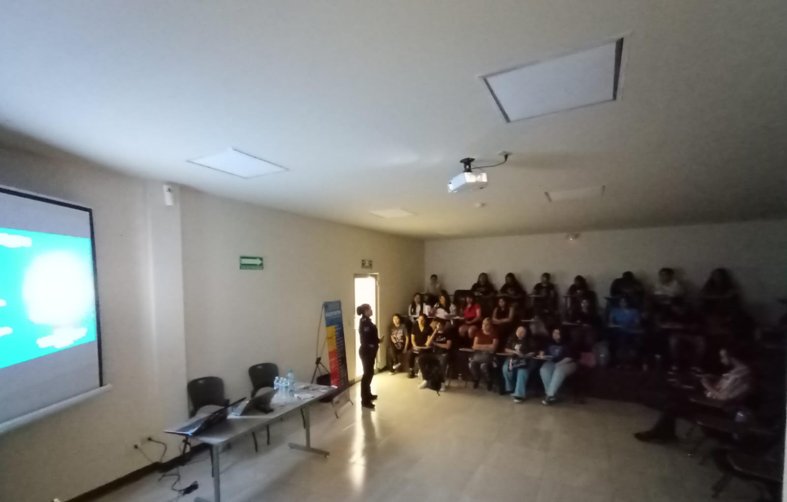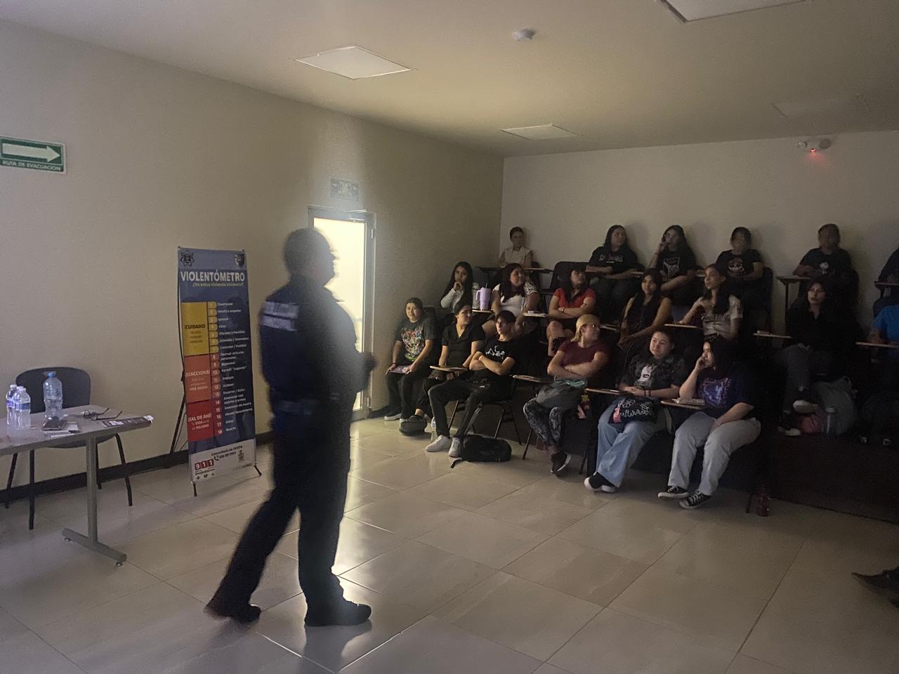 Ciudad Juárez.- Agentes de la Secretaría de Seguridad Pública Municipal adscritos a la Dirección Especializada en Violencia Familiar y de Género impartieron pláticas preventivas a los alumnos de la Universidad Vizcaya de las Américas.