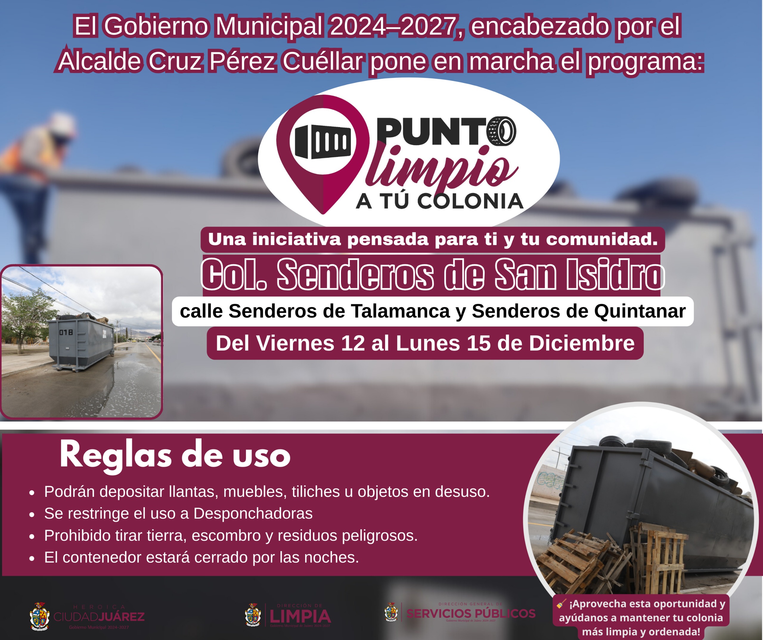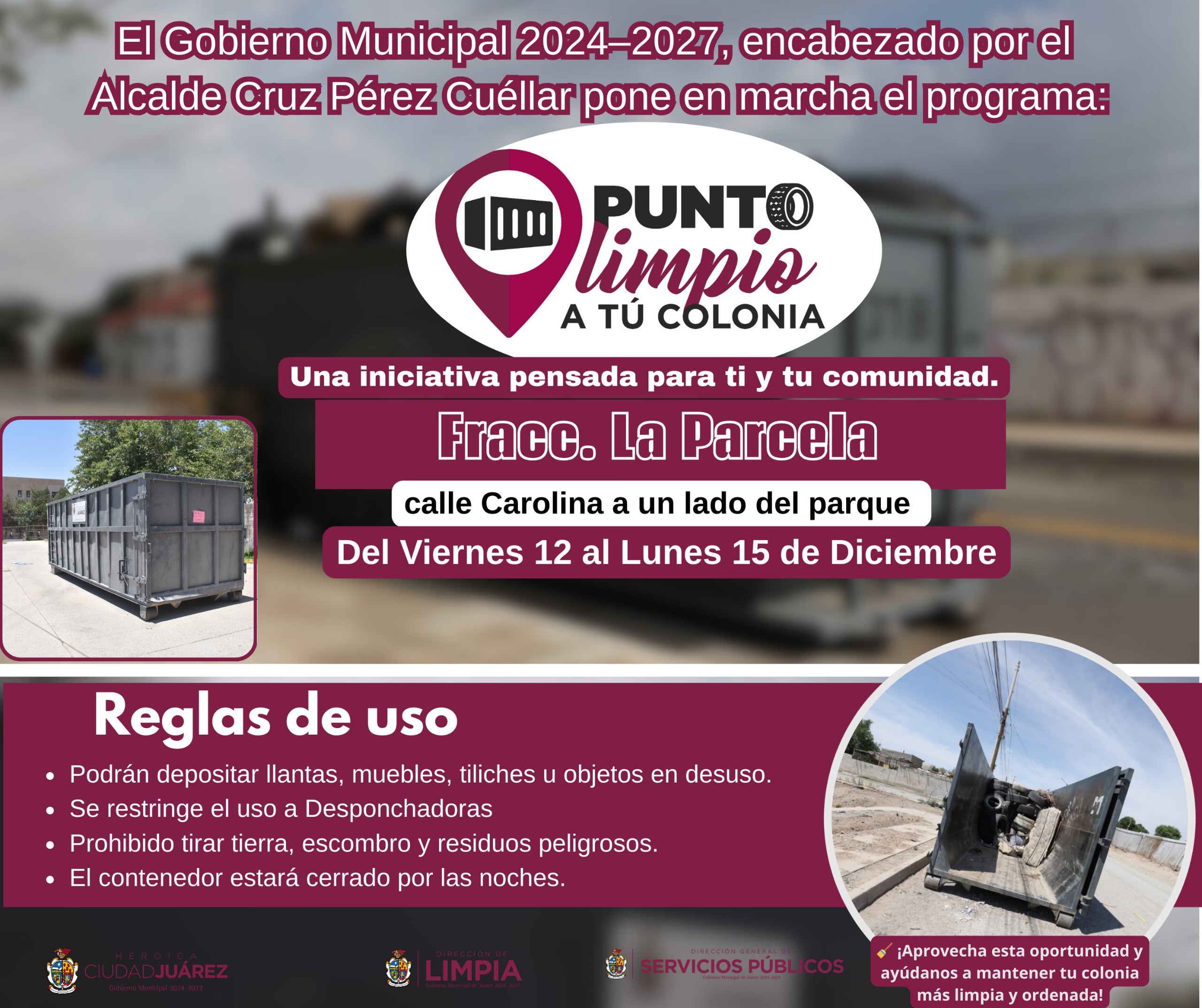 Con el propósito de facilitarle a la ciudadanía la disposición adecuada de los residuos voluminosos, la Dirección de Limpia instaló nuevos cuatro Puntos Limpios a tu Colonia.