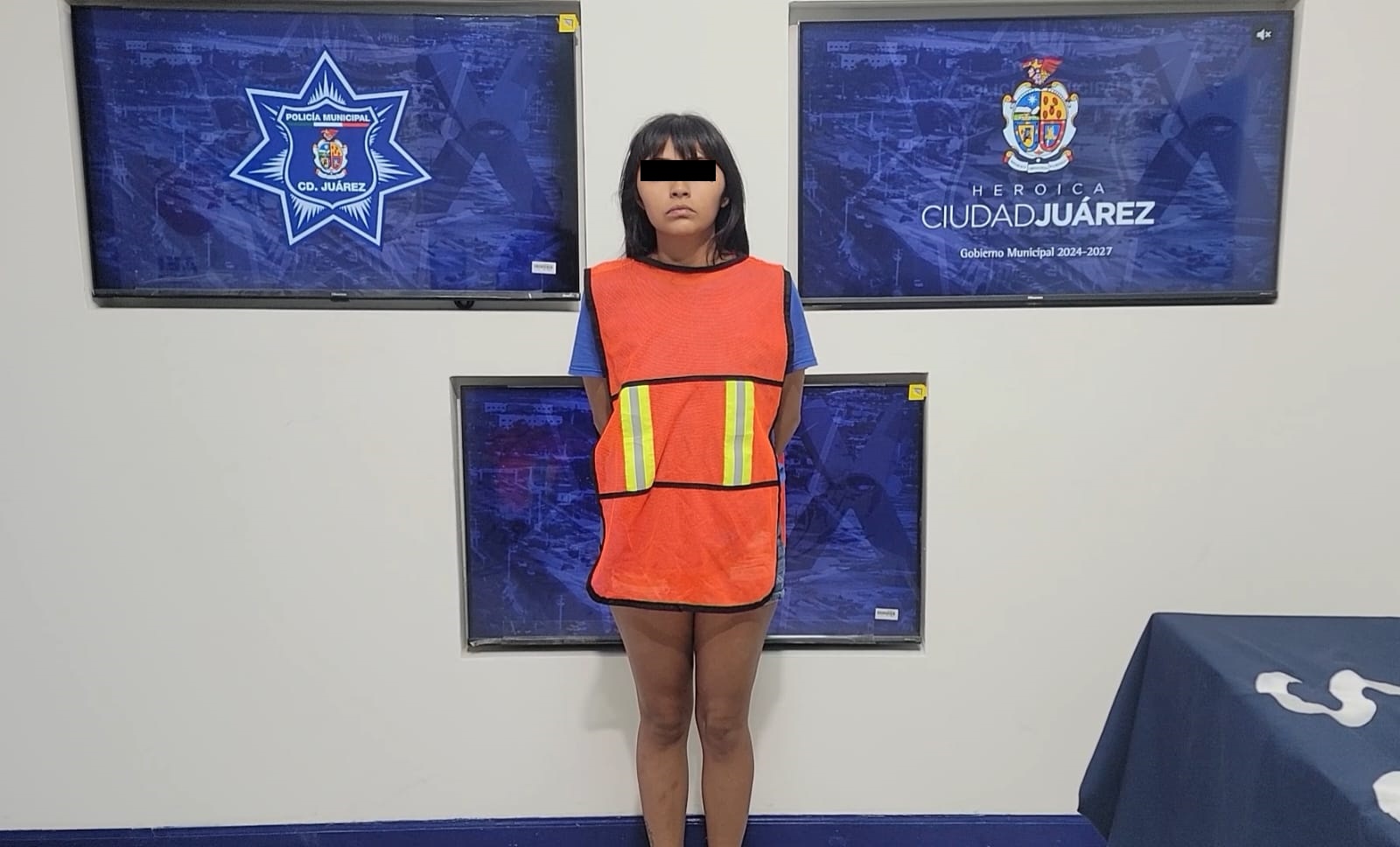 Ciudad Juárez.- Agentes de la Secretaría de Seguridad Pública Municipal adscritos al Distrito Poniente, capturaron a Amy Janine R. originaria de El Paso Texas y a su cómplice un adolescente, por su probable responsabilidad en la comisión del delito de robo con violencia y por delitos contra la ley federal de armas de fuego y explosivos.