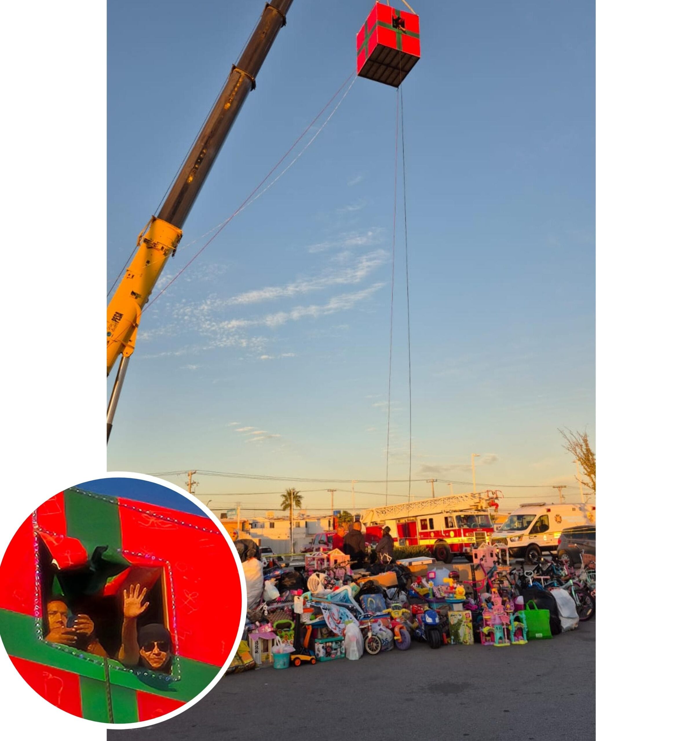 El evento consistió en que ambos locutores permanecieran suspendidos a 40 metros de altura en una casa sostenida por una grúa, con el objetivo de recaudar juguetes destinados al Departamento de Bomberos. Estos juguetes serán entregados el próximo 23 de diciembre en el tradicional evento “Santa Bombero”.