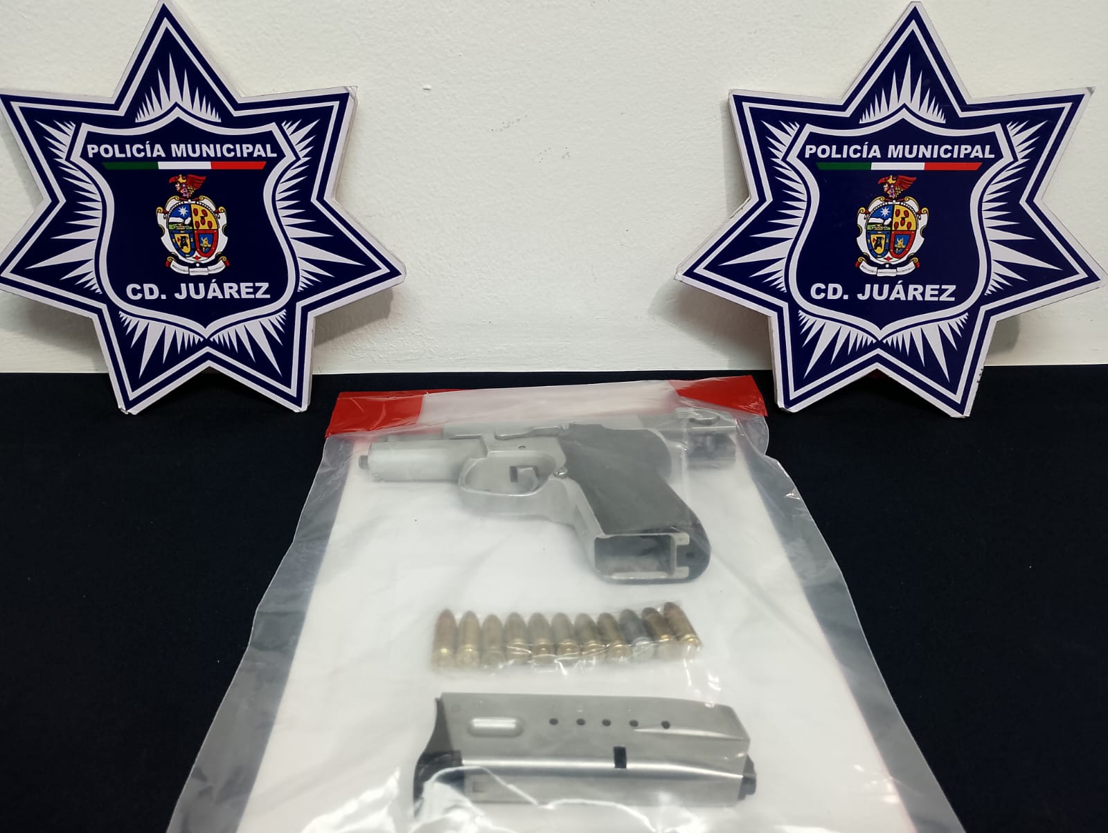 Ciudad Juárez.- Como resultado del plan estratégico de seguridad implementado en la ciudad, agentes municipales en coordinación con elementos de la Secretaría de la Defensa Nacional y de la Guardia Nacional detuvieron a Fernando M. S. y un adolescente de 17 años, por su presunta responsabilidad en la comisión del delito de robo de vehículo y contra la ley federal de armas de fuego y explosivos.