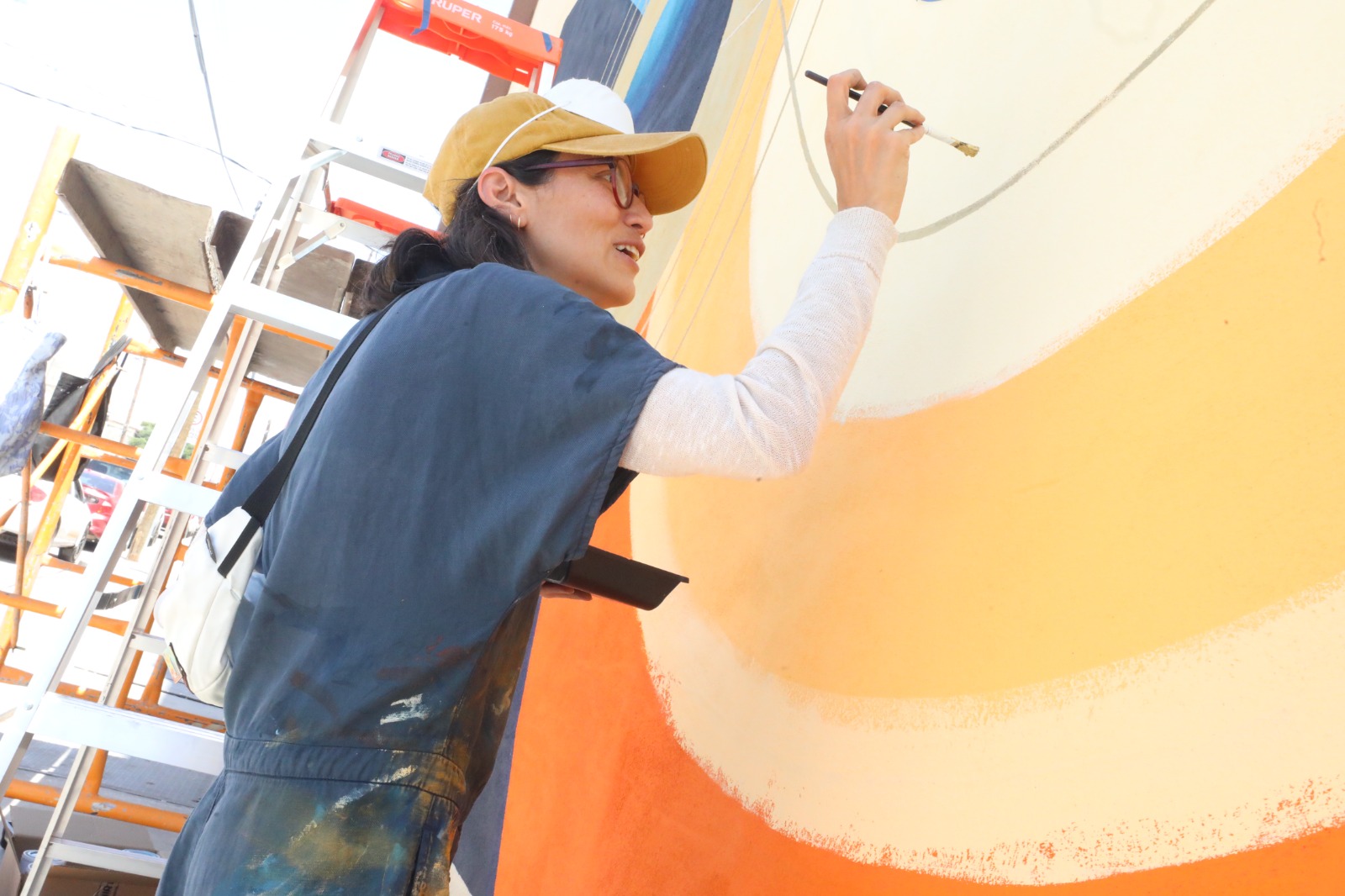 La artista visual es originaria de la Ciudad de México y llegó aquí para dar vida a una enorme pared de la calle Santos Degollado, entre Ugarte y Mariano Samaniego, en el Centro Histórico de la ciudad.