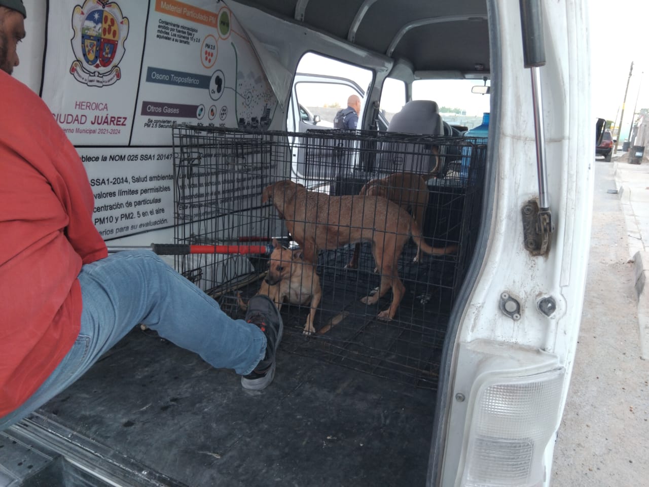 Ciudad Juárez.- Agentes de la Secretaría de Seguridad Pública Municipal en coordinación con la Dirección de Ecología, realizaron el rescate y resguardo de tres canes maltratados.