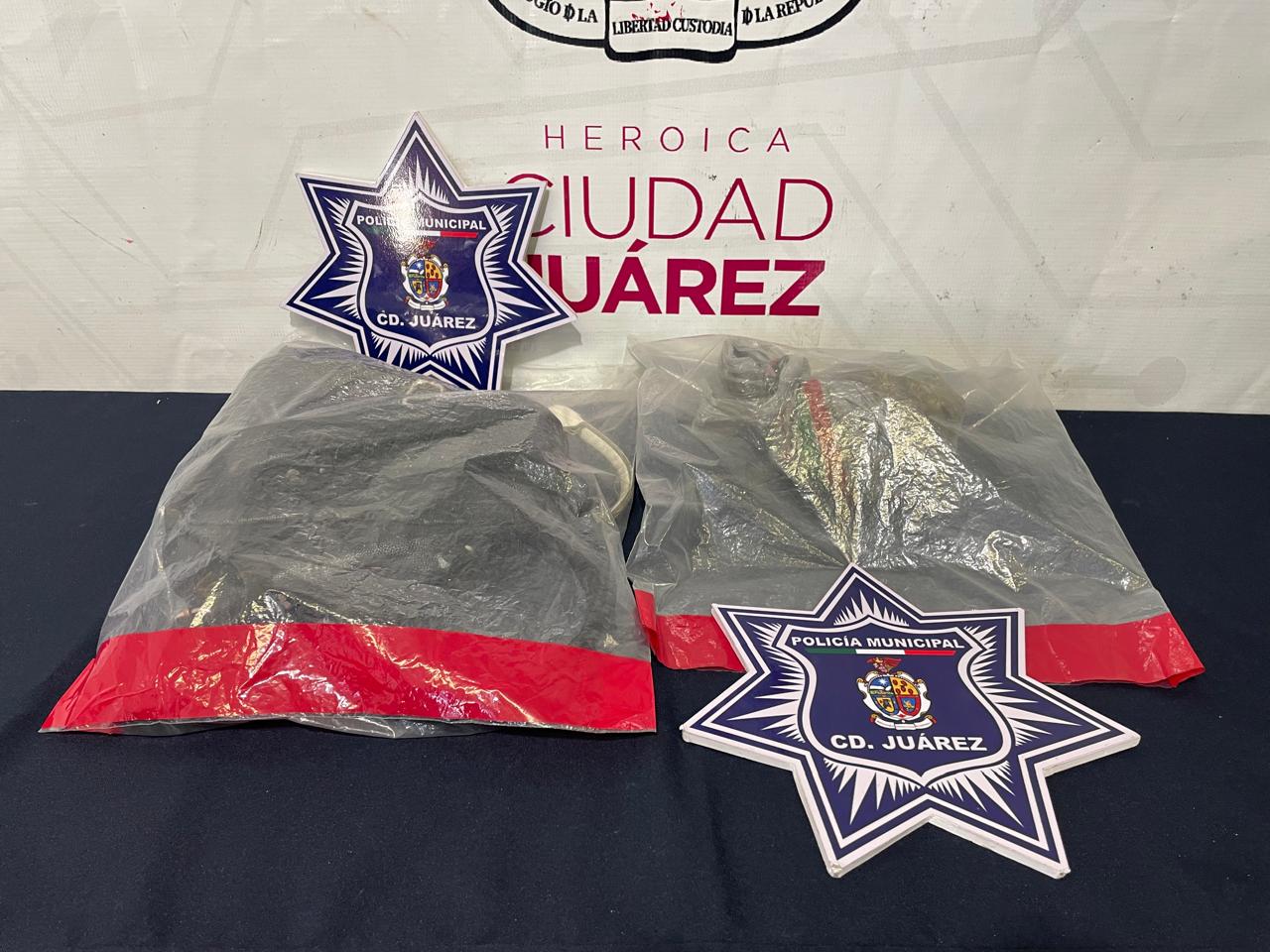 Ciudad Juárez.- Elementos de la Secretaría de Seguridad Pública Municipal arrestaron a Jesús Rodarte E. B. y Aracely R. H., por su presunta responsabilidad en la comisión del delito de posesión de vehículo con reporte de robo y delitos contra la salud.
