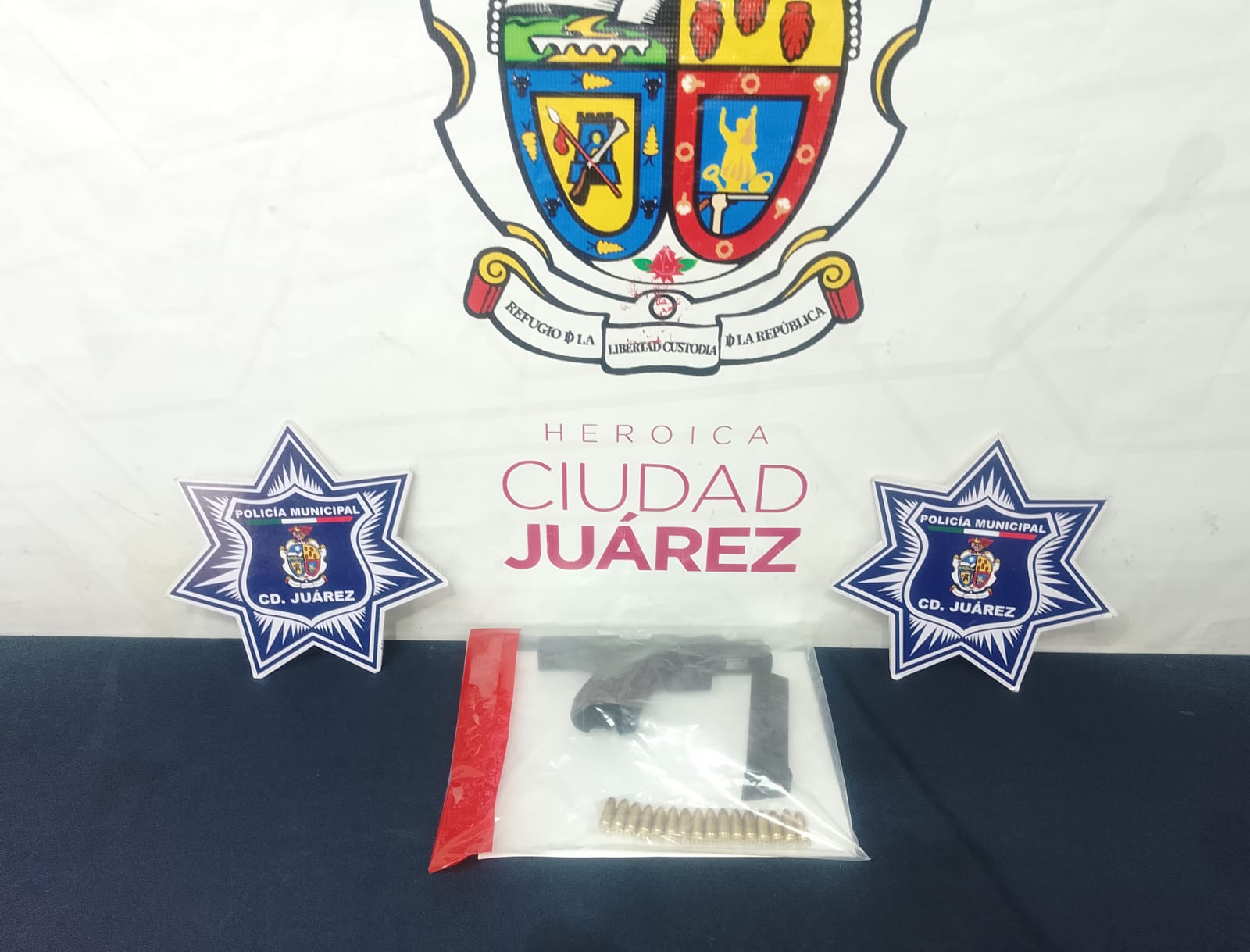 Ciudad Juárez-. Elementos de la Secretaría de Seguridad Pública Municipal, arrestaron a Eliseo N. O. y Oscar Adrián A. R., por su presunta responsabilidad en la comisión del delito contra la ley federal de armas de fuego y explosivos.
