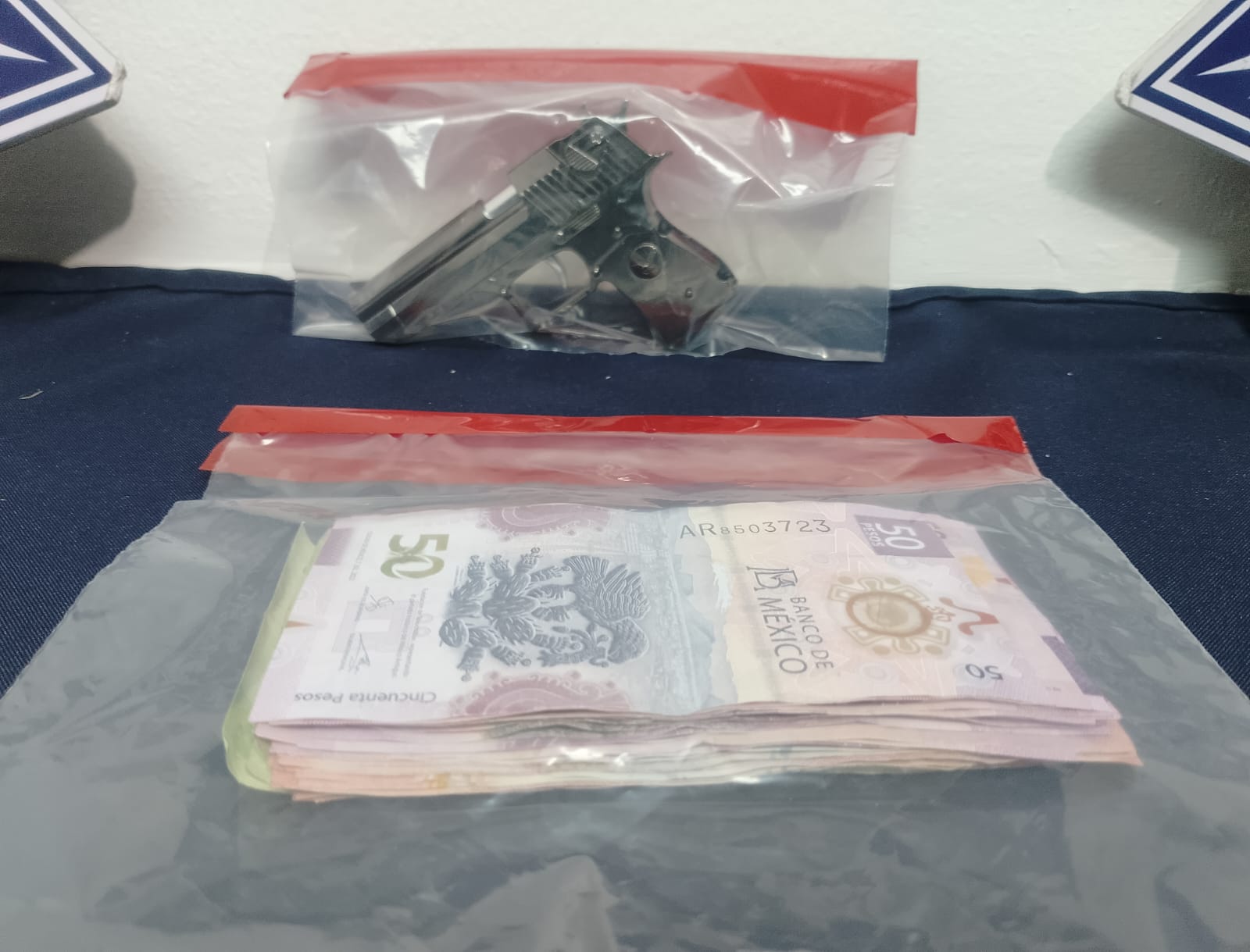 Los hechos se registraron mientras agentes municipales efectuaban labores de prevención y vigilancia en el fraccionamiento Santa Clara, cuando atendieron un llamado recibido al número de emergencias 911, donde reportaron un robo a una tienda de conveniencia con violencia, ubicada en el cruce de las calle Región de Ensenada y Paseo de San Carlos.