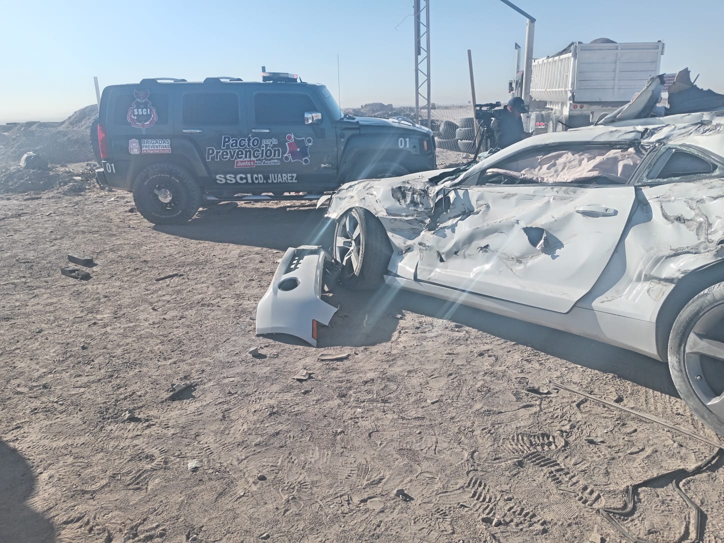 Ciudad Juárez.- Un joven sobrevivió milagrosamente después de chocar su auto deportivo contra un tráiler mientras circulaba por la carretera a Casas Grandes, a la altura de la calle Segunda.