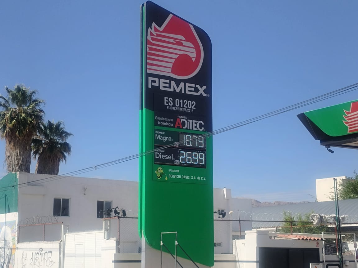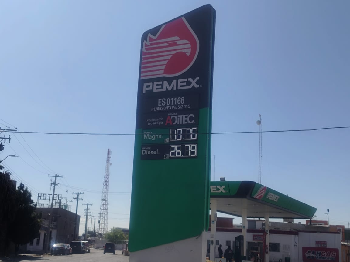 En otra gasolinera situada en avenida Insurgentes y Constitución, el precio de la Magna es de 18.79 pesos, mientras que el diésel se comercializa en 26.99 pesos.