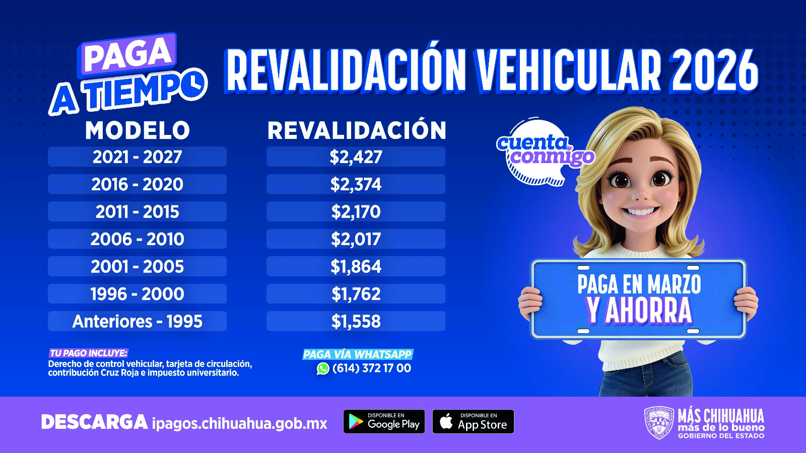El Gobierno del Estado, a través de la Secretaría de Hacienda, presentó en Ciudad Juárez la campaña de Revalidación Vehicular 2026, la cual contempla descuentos durante los meses de febrero, marzo y abril.