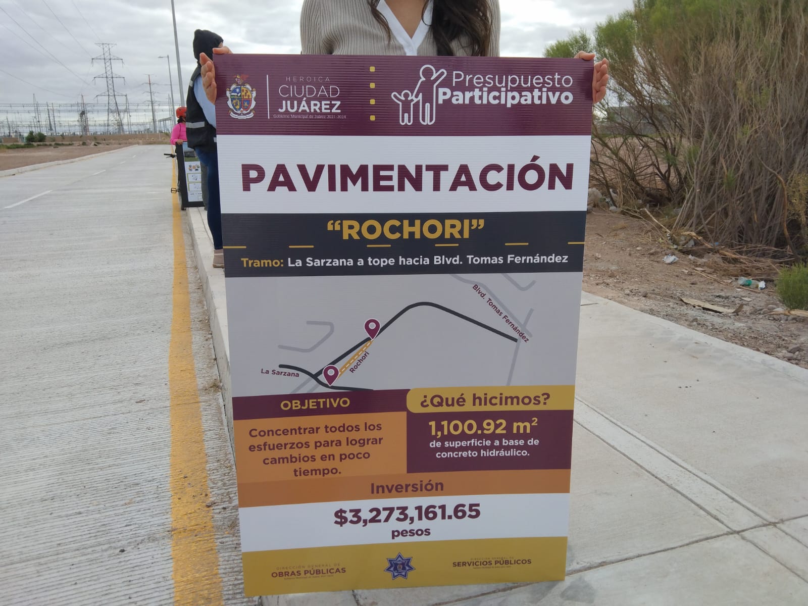 Por último se realizó la inauguración de la pavimentación de la calle Rochori ubicada entre las calles La Sarzana y bulevar Tomás Fernández, tramo en el que se utilizaron 3.2 mdp el cual fue realizado con concreto hidráulico con el fin de mejorar la vialidad en aquel sector.