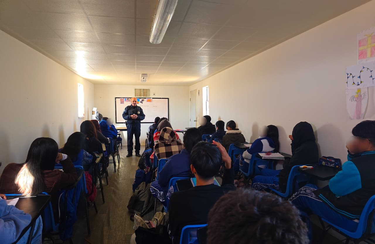 Ciudad Juárez.- Con la finalidad de sensibilizar y orientar a la comunidad estudiantil sobre los riesgos asociados al uso de internet y la prevención de adicciones, la Secretaría de Seguridad Pública Municipal, por medio de la Dirección de Prevención Social, impartió una plática informativa a alumnas y alumnos de la Escuela Secundaria Técnica número 10.
