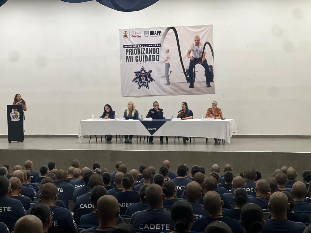 Ciudad Juárez.- La Secretaría de Seguridad Pública Municipal a través de la Unidad Mixta de Defensa Legal y Atención Psicológica para Policías y sus Familias (UDAPP), realizó un foro de salud mental, denominado “Priorizando mi cuidado” en una cuarta edición que tuvo lugar en el Auditorio de la Academia Municipal de Policía.